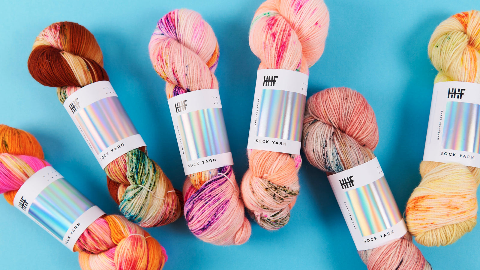 With this gorgeous blend of superfine superwash merino and nylon, the stitch pattern in these socks really pop out! The yellow sample here is knit in HEX Bianca.