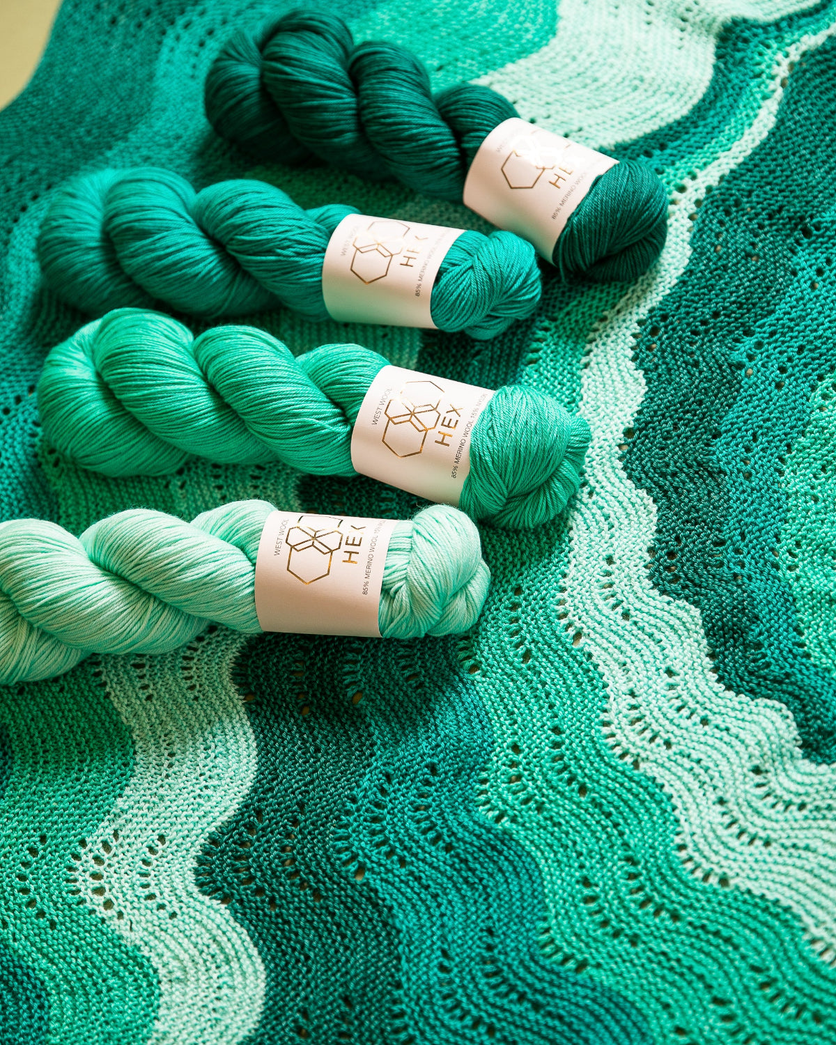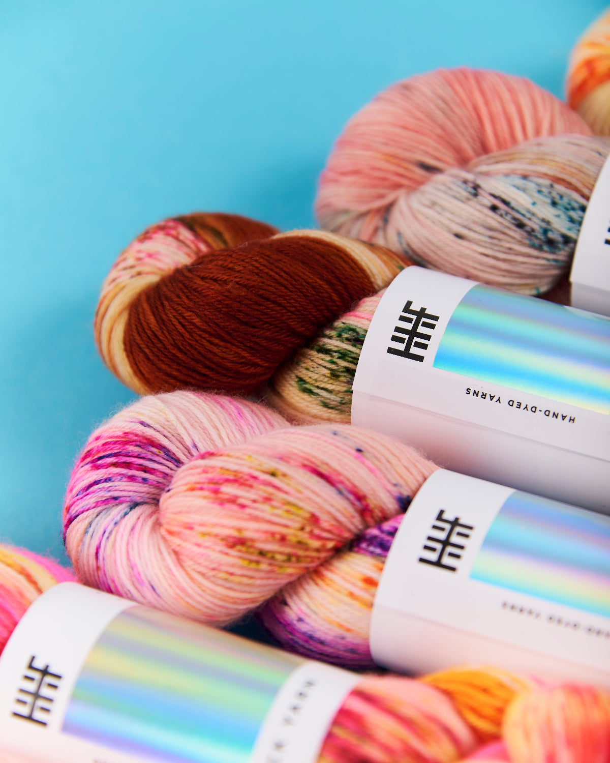 This colourful West Wool kit contains 20 skeins of Bicycle - our house brand fingering-weight yarn.