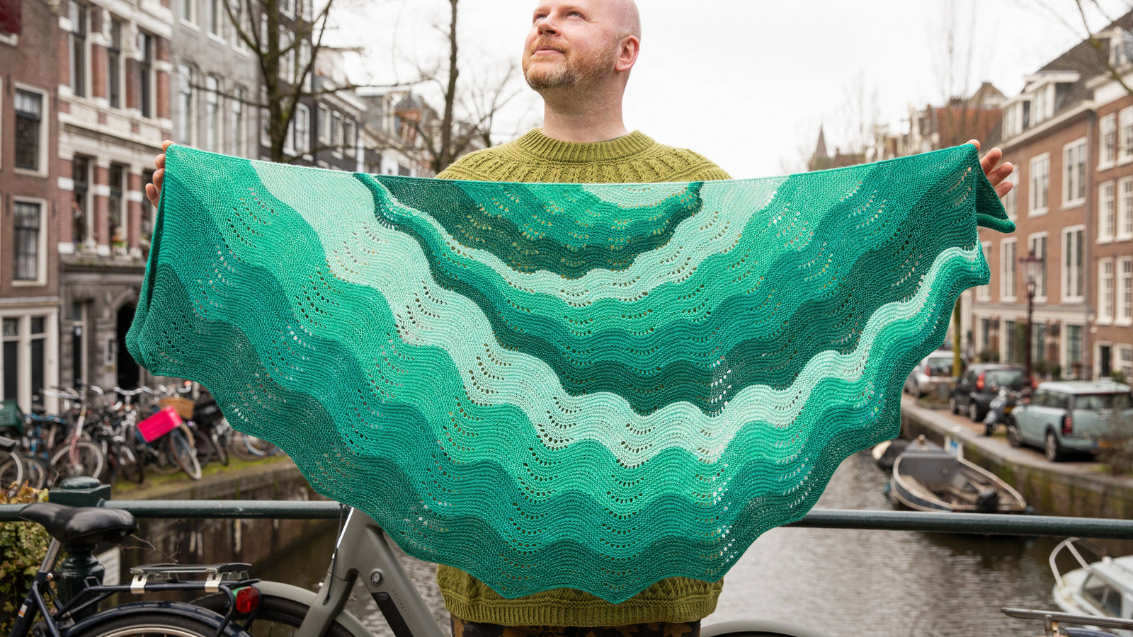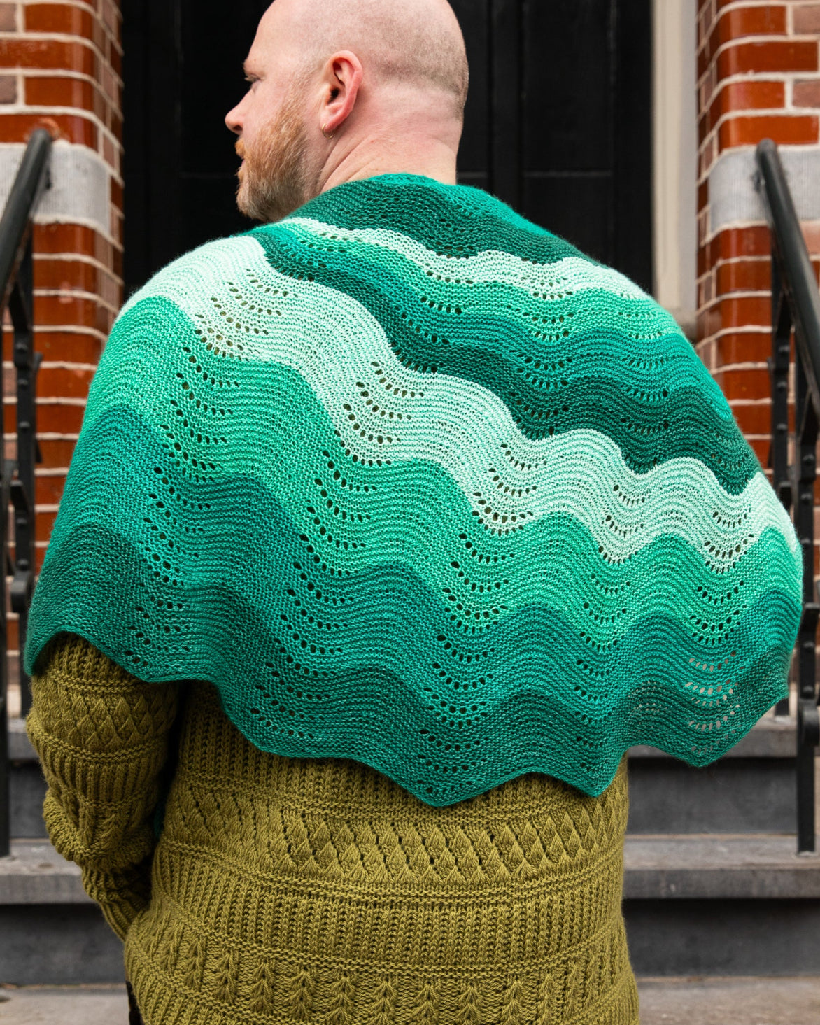 This pattern is available in sizes from XS to 5XL, and the Cycling Adventures kit provides enough yarn to knit it in any of these sizes! The Bubble Cardigan is knit top-down and has an oversized fit with drop shoulders. It uses the Bubble Stitch for the body, and brings in a beautiful solid colour for the collar, cuffs, and ribbing.