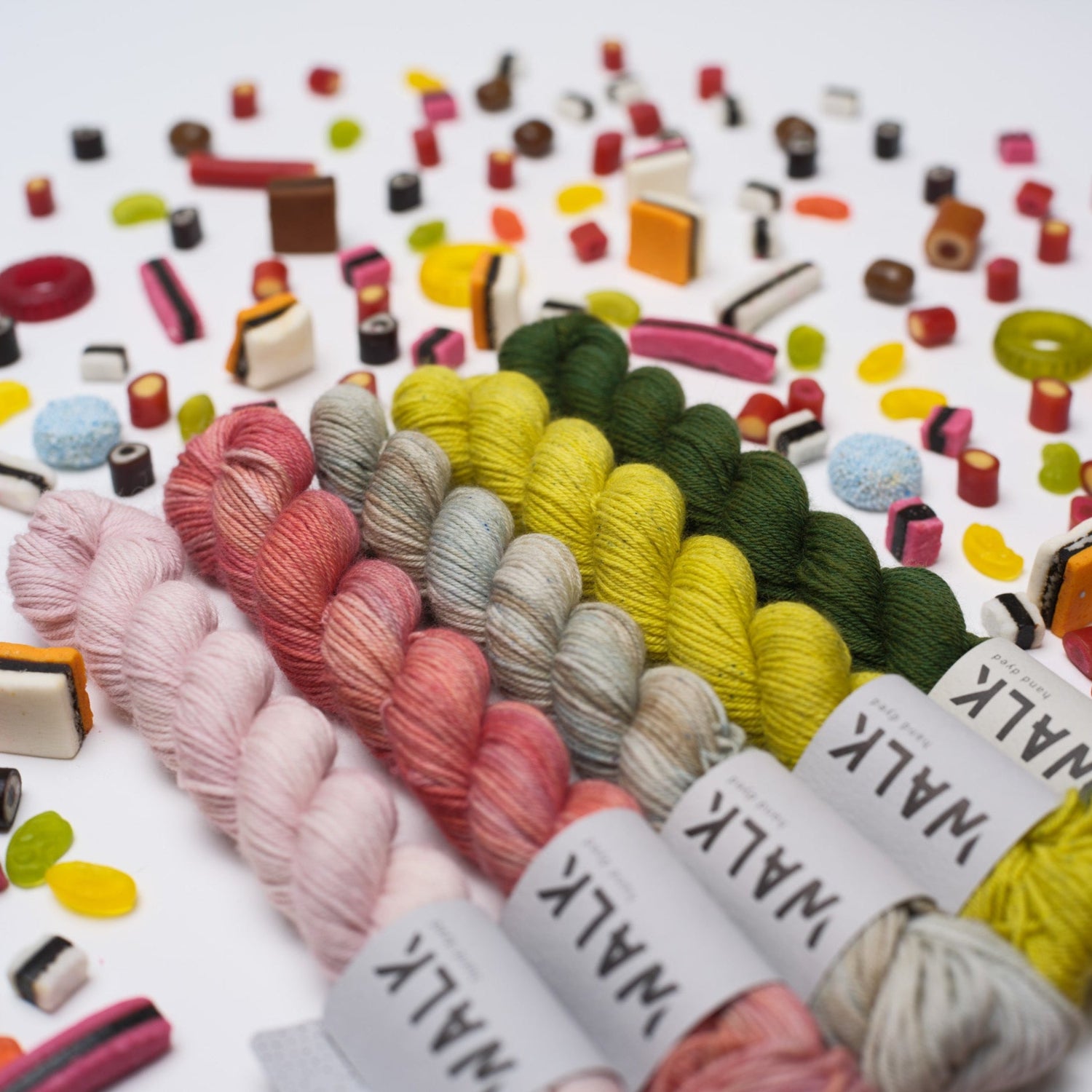 Welcome to the 2025 Westknits Surprise Sock Along! This gorgeous palette was exclusively selected for this year theme: Delectable Collectible! For 4 weeks starting in July, you will get a clue as you knit a one-of-a-kind design!