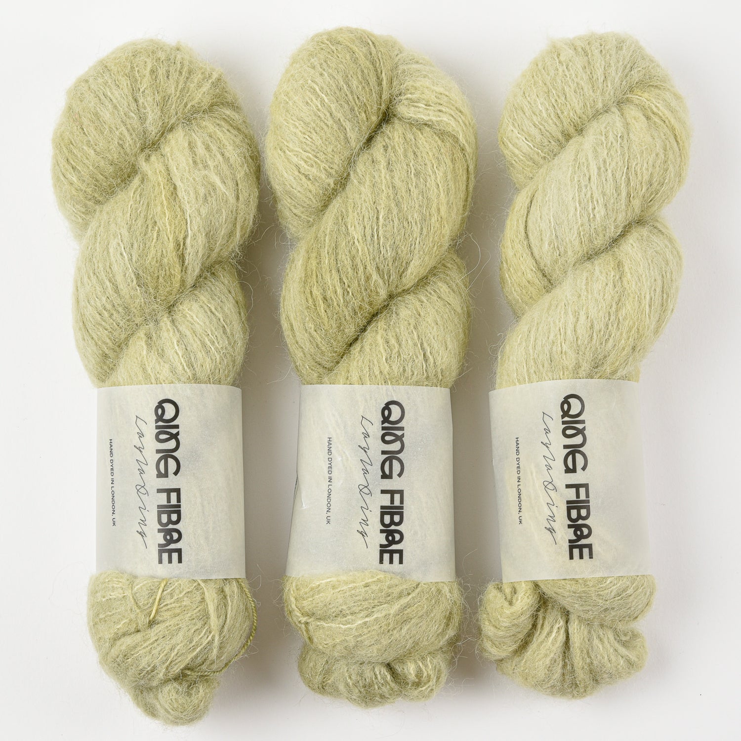 Qing Fibre’s Melted Baby Suri is a fluffy blend of Baby Suri Alpaca, Merino, and Silk. Perfect for cloudy soft garments and accessories.