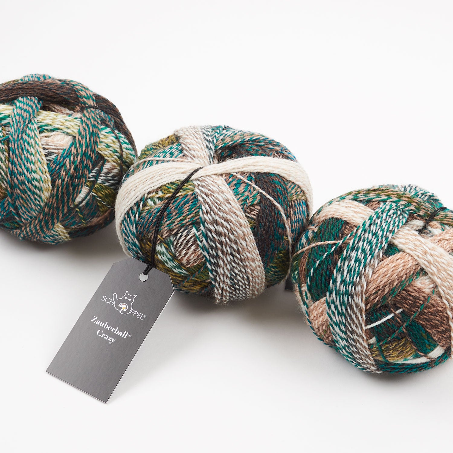 Self-striping Zauberball Crazy by Schoppel Wolle is a versatile fingering weight yarn that produces unique, non repeating colour blocks, perfect for fun accessories and shawls.