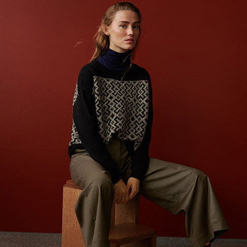 It wasn’t until the 1990s that Marianne Isager truly began exploring the world. In this book, we follow Marianne on her travels to Latin America, Africa, Greenland, and Nepal. On these travels, the gates open wide for an abundance of inspiration. Not just the patterns of textile, baskets and pottery, but also architecture, landscapes and all of those wonders that will fill your mind and soul when you first visit a new place and experience the traditions, the food, the people, and the history of the country creeping into the core of your body. As in the first book, a number of her previous and most significant designs are presented, many of which reflected the fashion of the day. This book also contains 16 new designs with knitting instructions based on the inspiration from her travels, all of them combining craftsmanship and yarn of high quality.