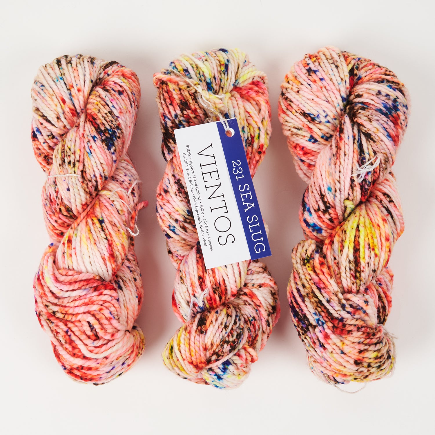 A new bulky yarn to defy the winds. Its two plies create an expressive texture that brings depth to its colours and a unique personality to each garment.