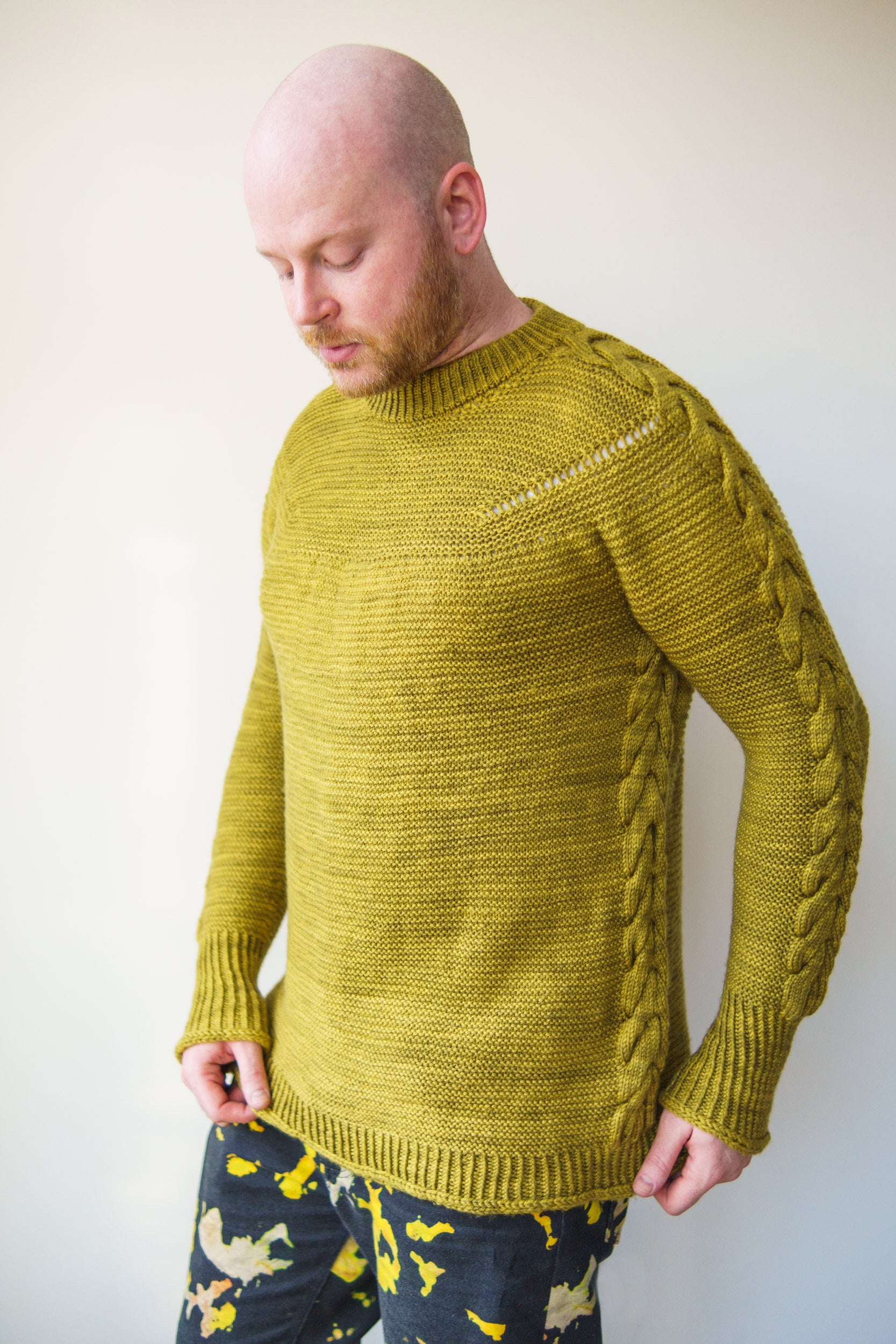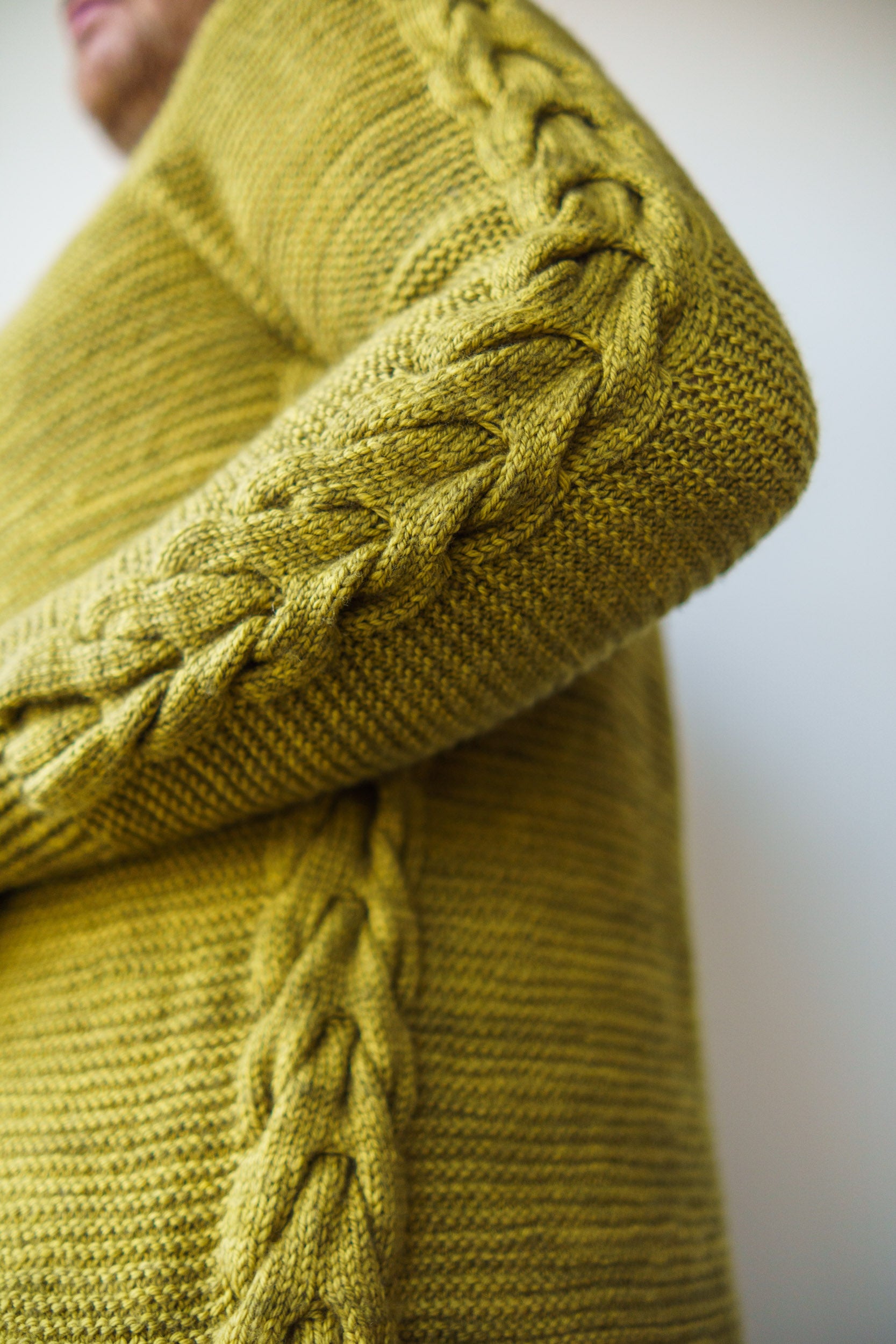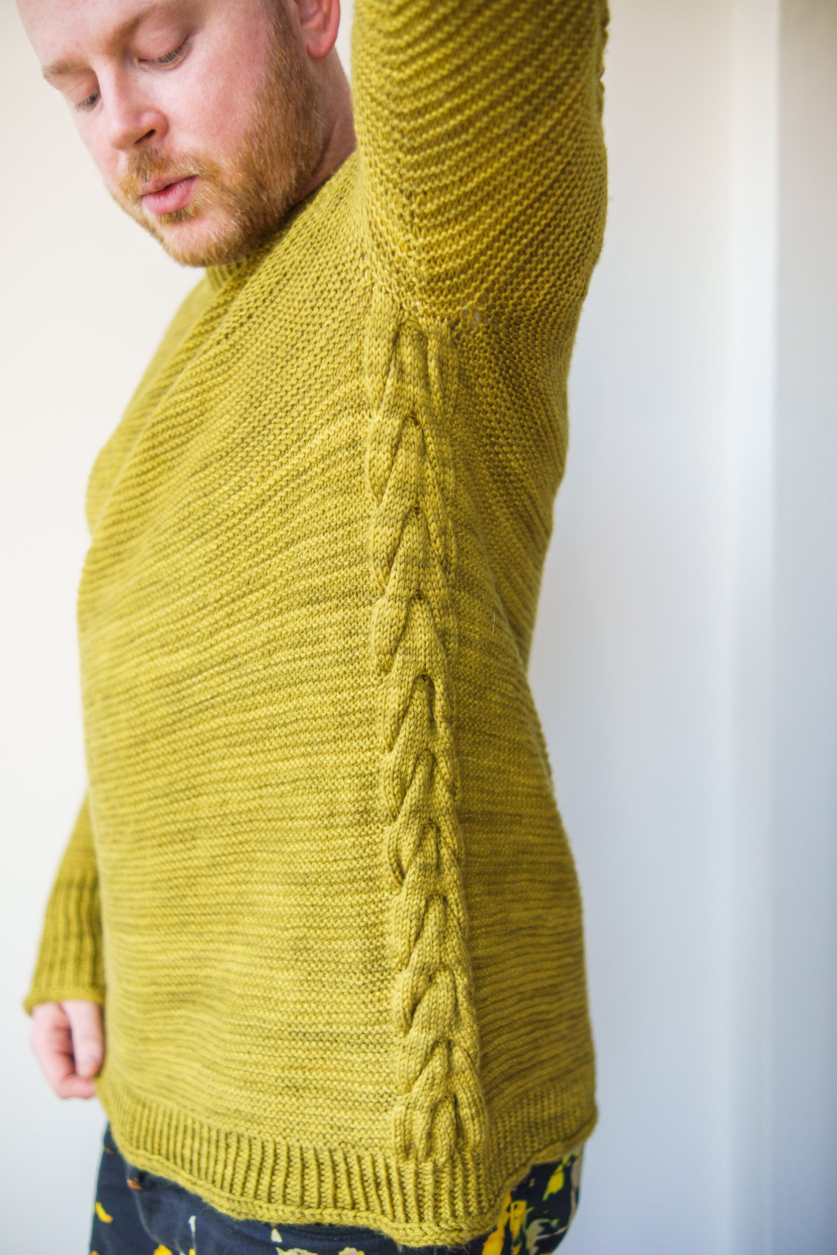 The Antler Sleeve Sweater is knit top-down in your favourite colour of DK weight yarn. A squishy garter stitch forms the majority of the sweater fabric with stunning textured antler cables cascading down the shoulders and sleeves of the sweater. The easy garter stitch combines beautifully with the textural delight of the cable details for a truly elegant finished Antler Sleeve Sweater.