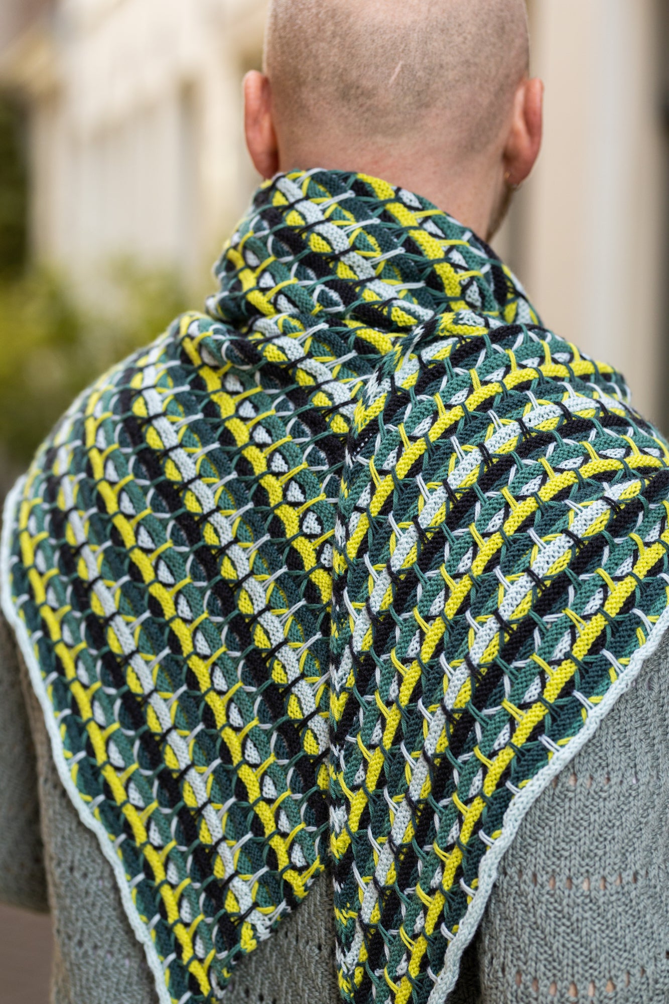 To knit the Aurora Cabin Triangle, you can select your favourite kit featuring West Wool’s very own Tricycle. This shawl is knitted with one colour at a time using slip stitch and cable techniques, resulting in a fascinating pattern filled with intricate geometric lines. Pick the perfect combination of five contrasting colours and stripe them together to knit this gorgeous sideways triangle! Yarn Requirements:10 skeins of fingering weight yarn in 5 contrasting colours