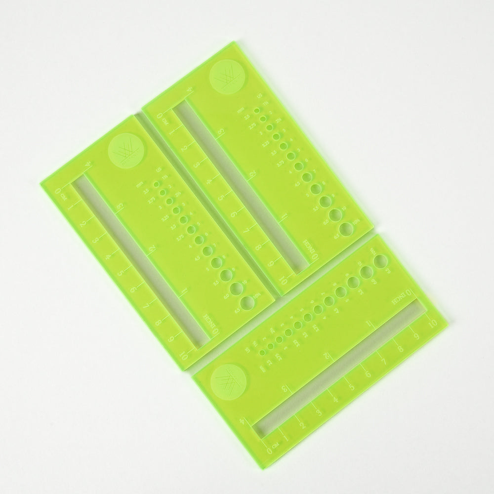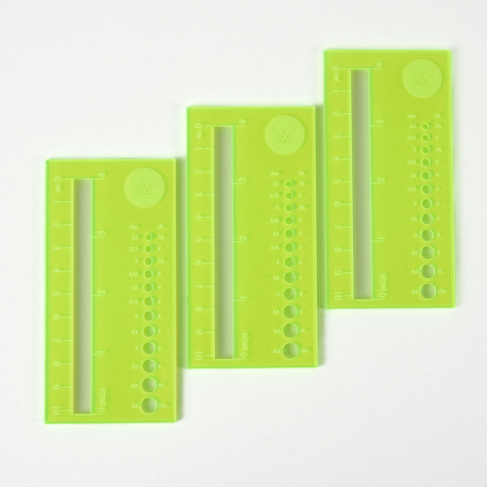 Measuring your needles is easier than ever with this eye catching needle gauge. The bright colour is not only fun, but also makes it impossible to lose in your crafting tool kit.