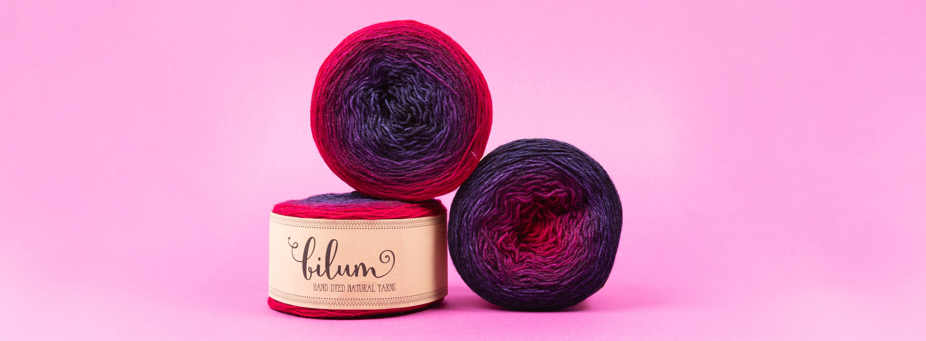 Bilum is a yarn supplier based in Budapest, Hungary. Here owner and life-long lover of colour Zsofi hand dyes all their yarns with their signature gorgeous gradients. Each and every cake is a unique piece of art!