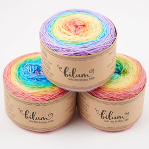 Bilum's Loli is a perfect gradient all in one squishy cake of hand dyed fingering weight merino yarn. Works perfectly with the Painting Honeycombs Shawl or  Butterfly Wing Shawl. Or why not knit yourself a pair of contrasting socks!