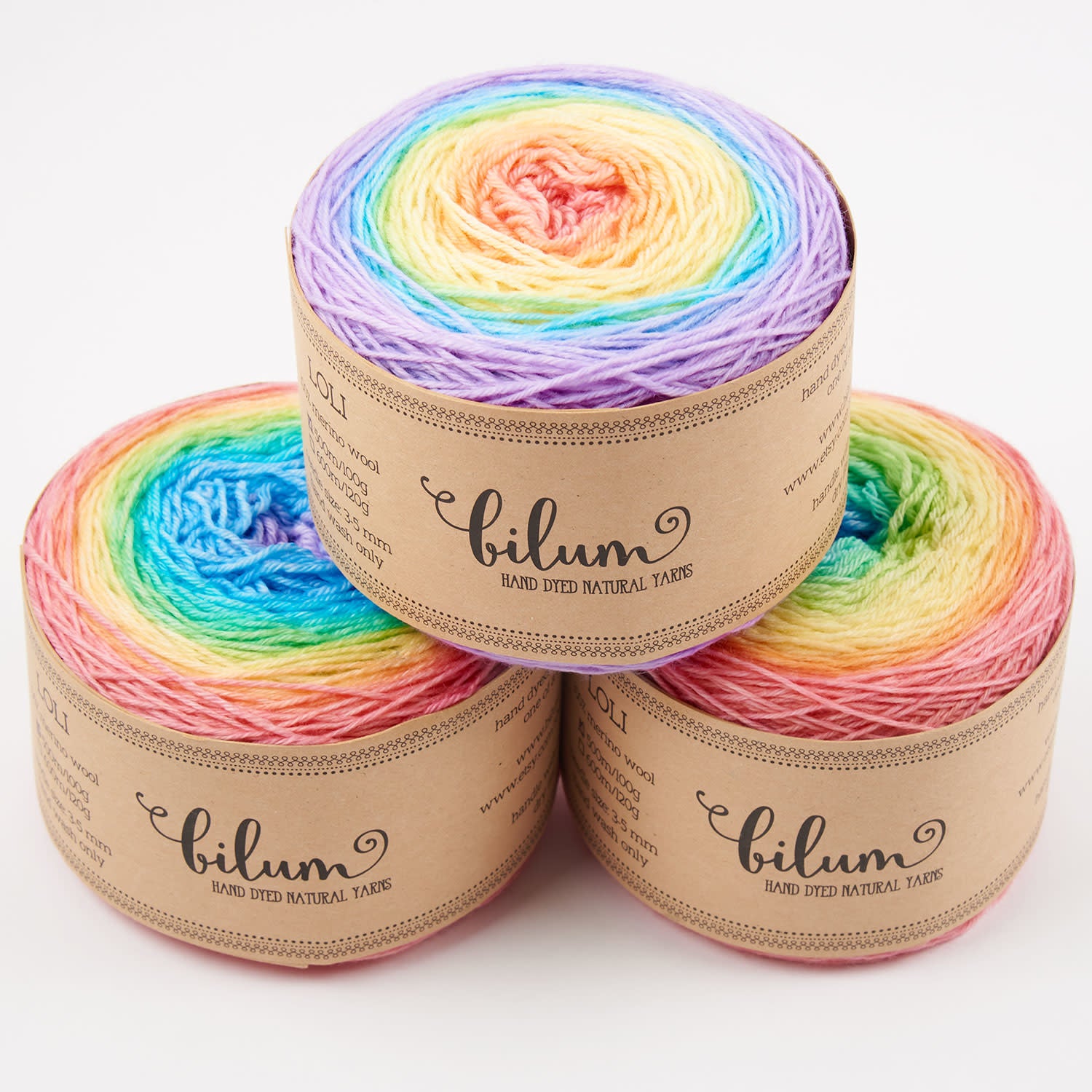 Hand dyed yarn is extra special because every yarn cake is one of a kind. Although we take great care to photograph our products accurately, the unique skeins in your order may look different to the picture.