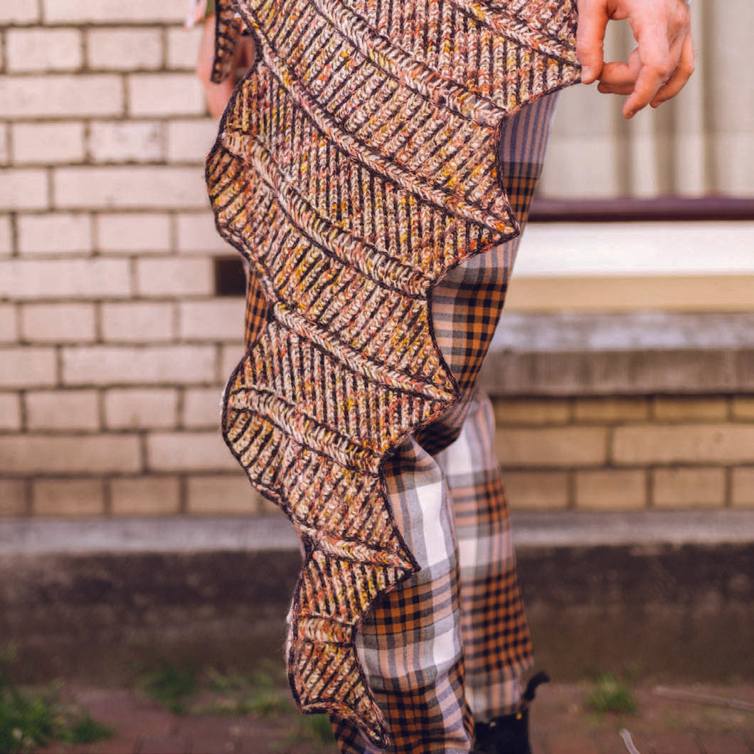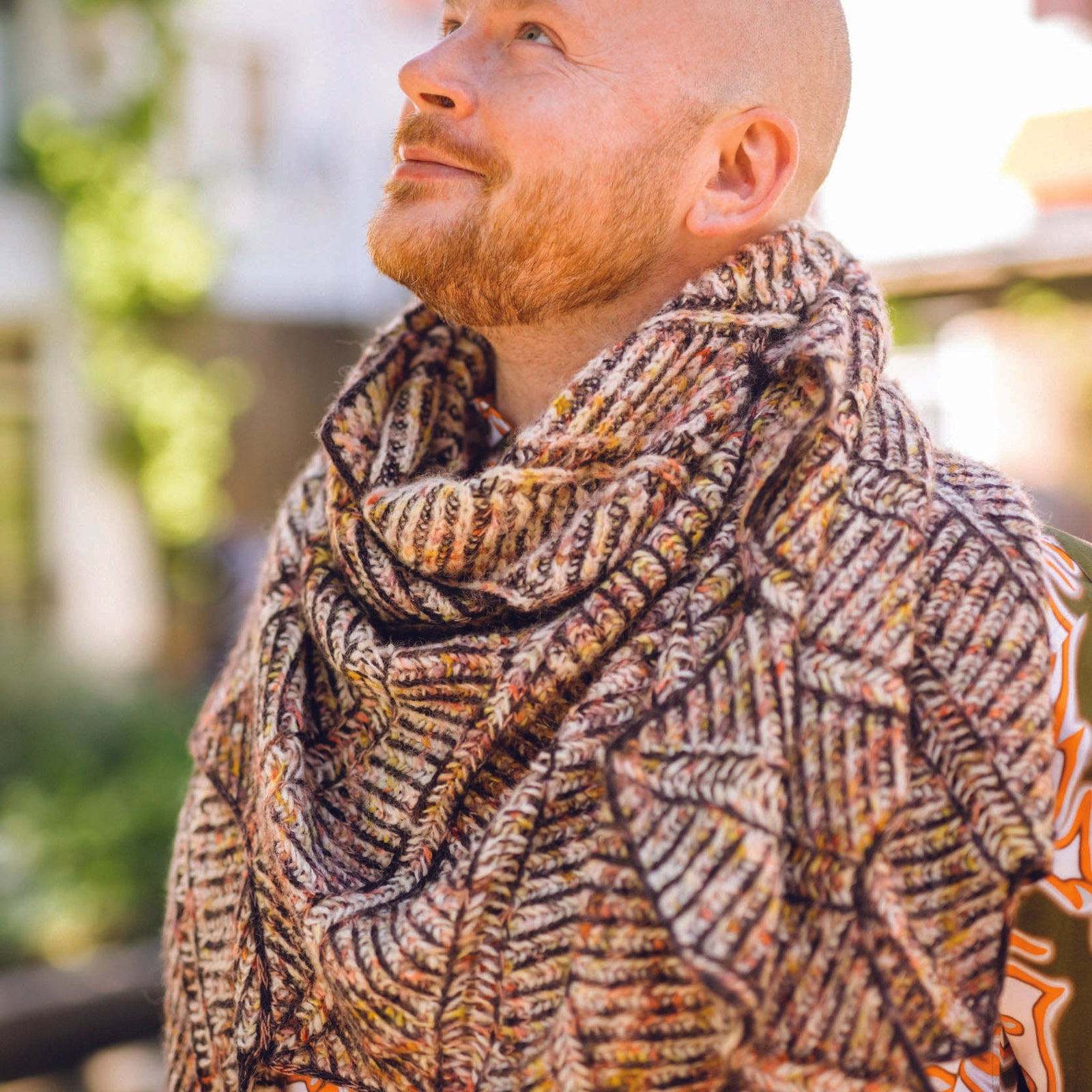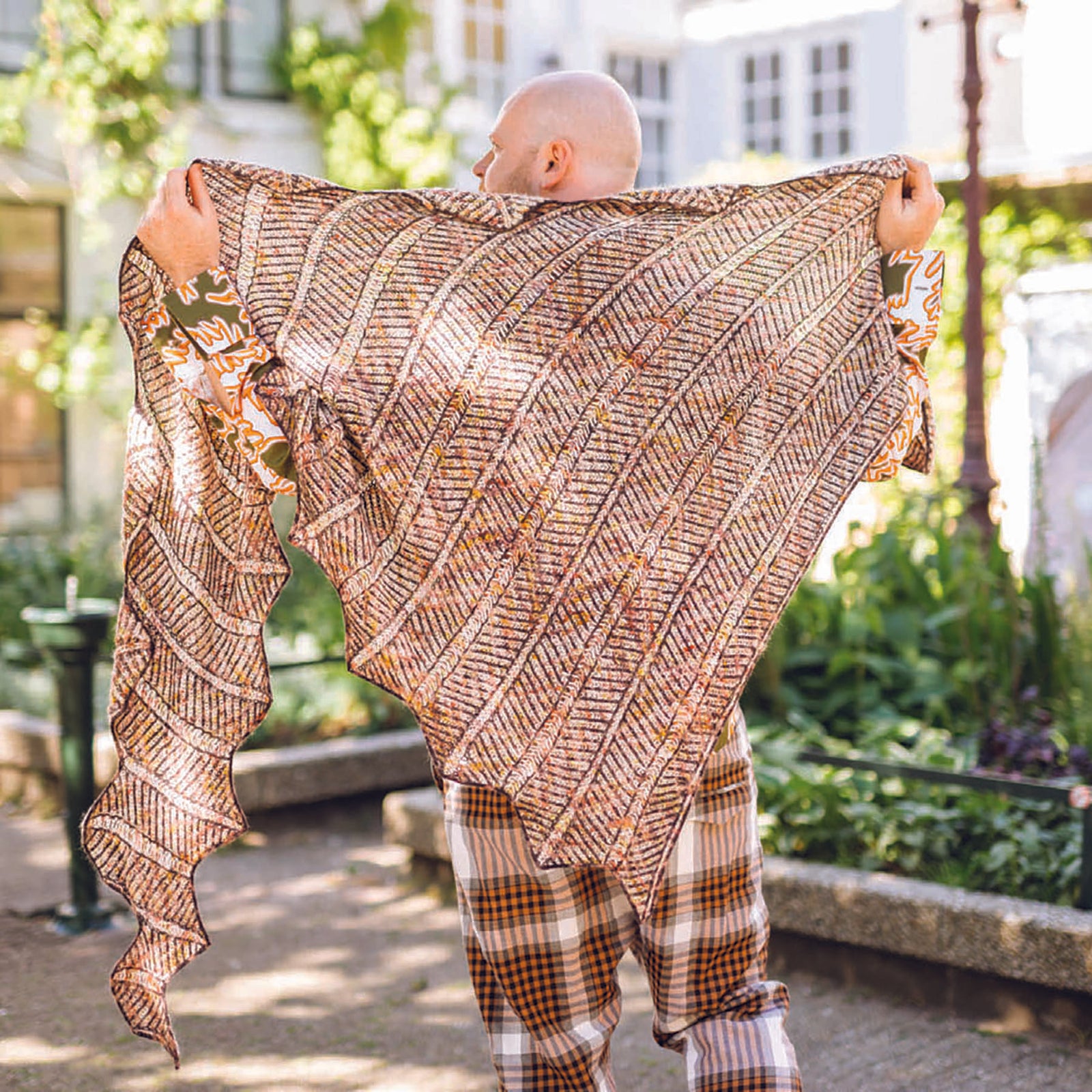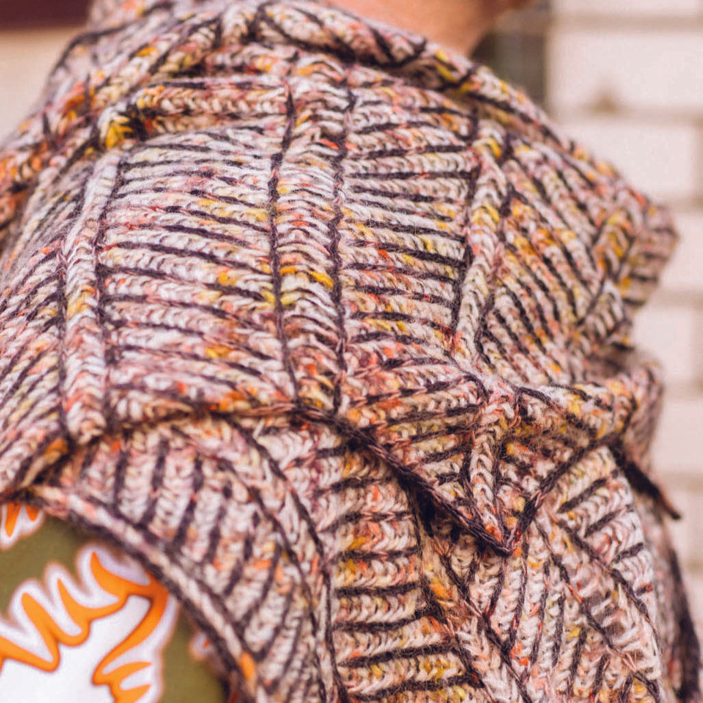 Enjoy lots of graphic chevrons with this two-colour brioche shawl design. The pattern begins at the corner with one chevron motif. Then, more chevrons are achieved one a time with an I-cord cast on technique to expand the shape. You can customise the size easily by binding off early or continue to knit more pattern repeat for a big shlanket (shawl/blanket).