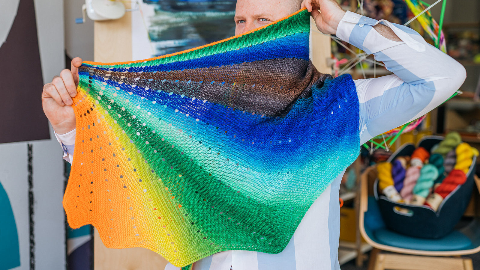 This garter stitch shawl is knit with short rows that echo the wings of a butterfly. I-cord edges frame the shawl for a smooth and easy to knit project. Two cakes of Bilum’s gradient yarn produce fascinating colour changes, so you can let the yarn do all the work as you enjoy the relaxing garter stitch rows.