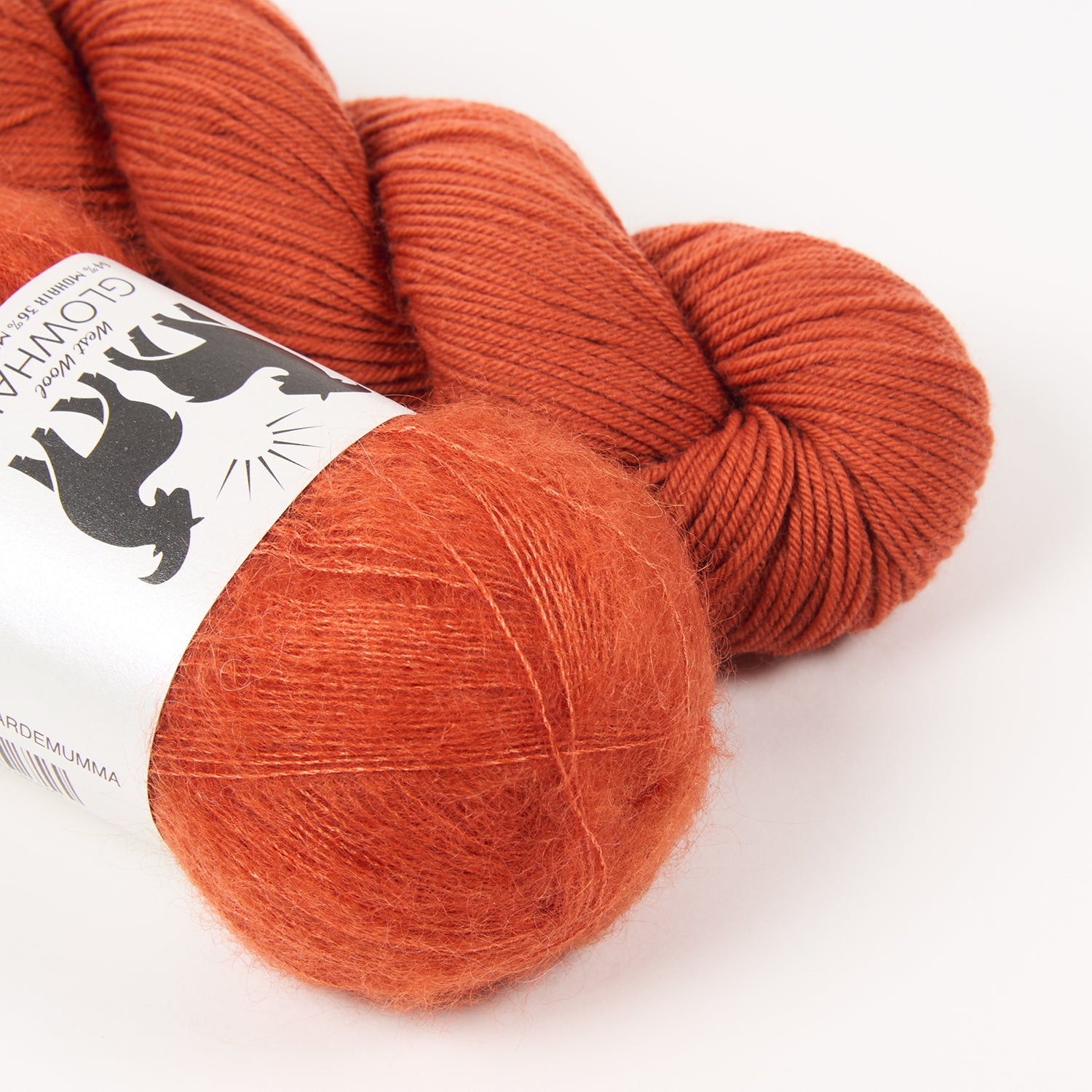 Yarn Requirements: 1 colour of fingering weight yarn and mohair lace yarn, amount changes depending on size