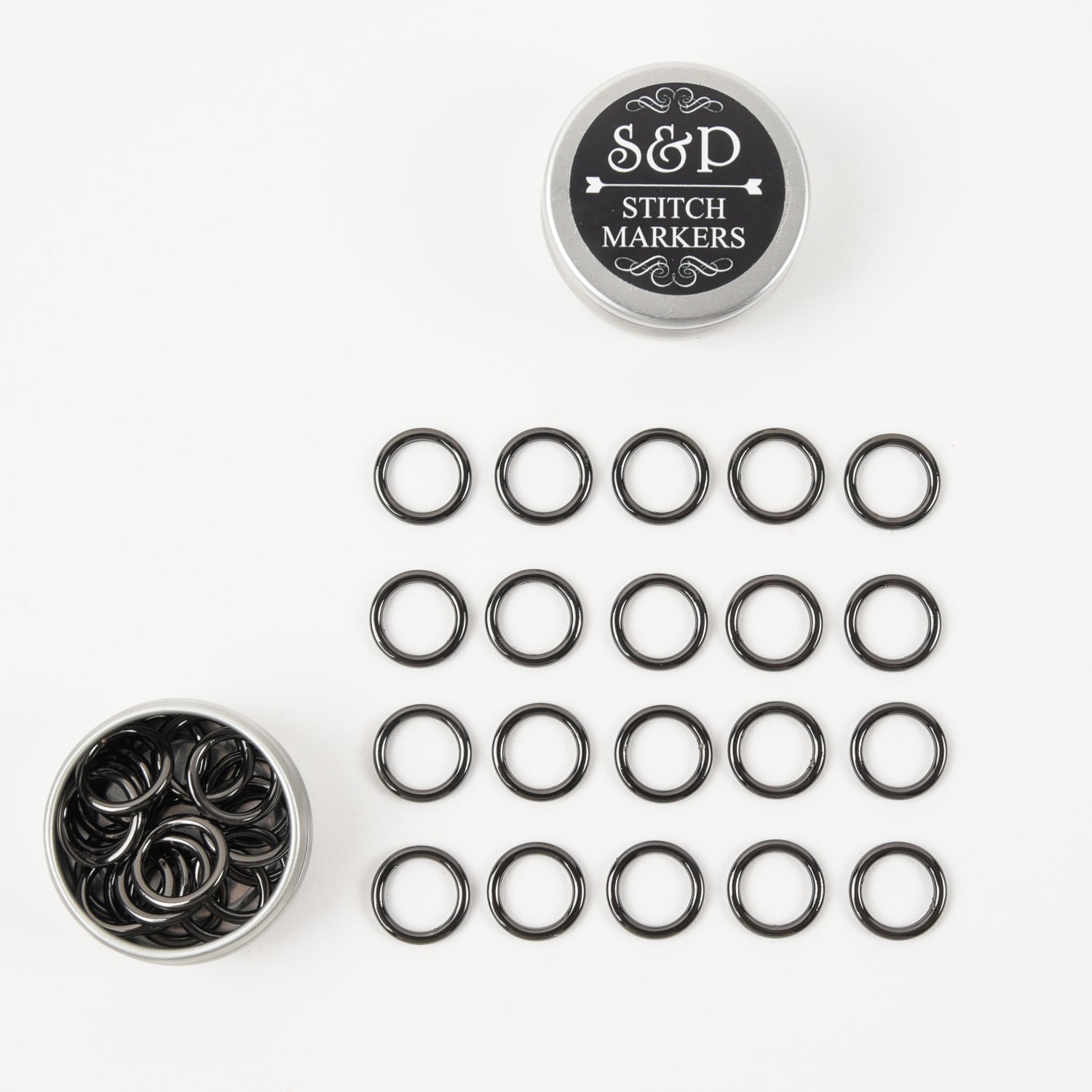 ROUND LG ZINC ALLOY BLACK STITCH MARKERS 20 PCS knitting-toolsneedlesandtoolsnew-knitternotions-toolssmall-thank-yousstephen-penelopeyear-of-sock-adds-on