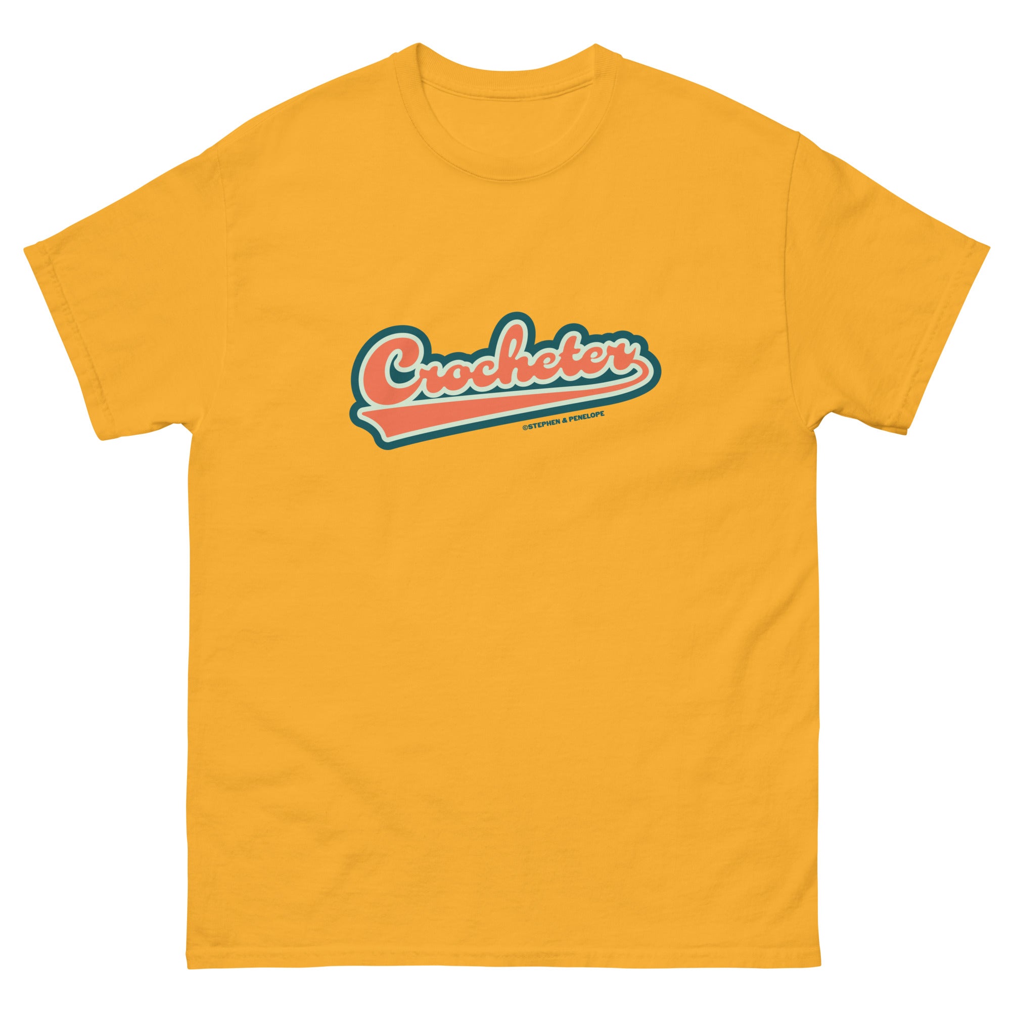 Crocheter's unite! This vintage sporty-style t-shirt is a cute throwback with a yarny twist. Whether you're a seasoned hook master or just discovering the meditative magic of crochet, this tee celebrates your creative passion in style. The retro athletic aesthetic brings vintage charm, while the playful design speaks to fellow fiber enthusiasts who absolutely get it. Find your team colours and wear them with pride. Perfect for crafting sessions, casual outings, or connecting with your creative community.
