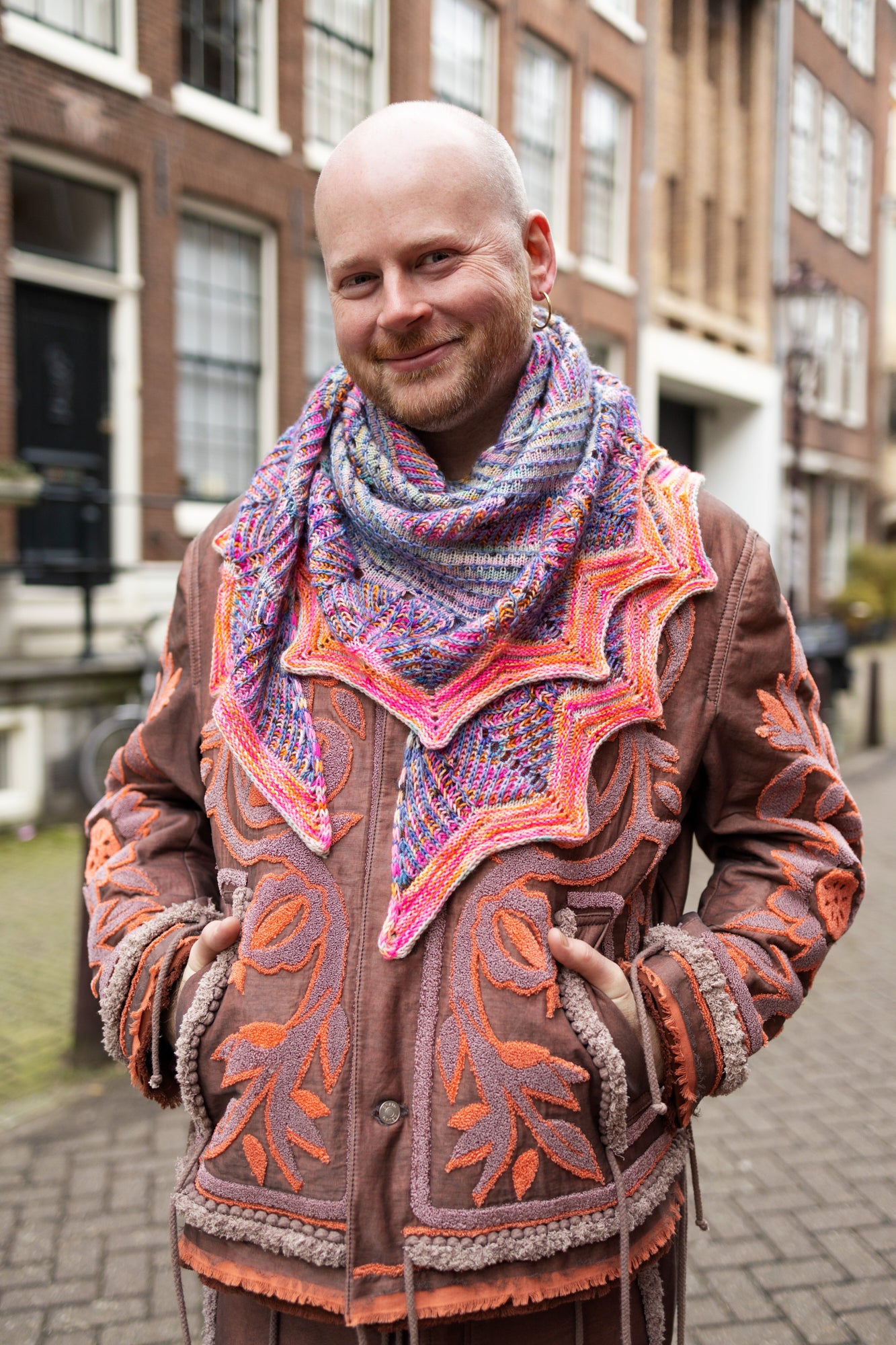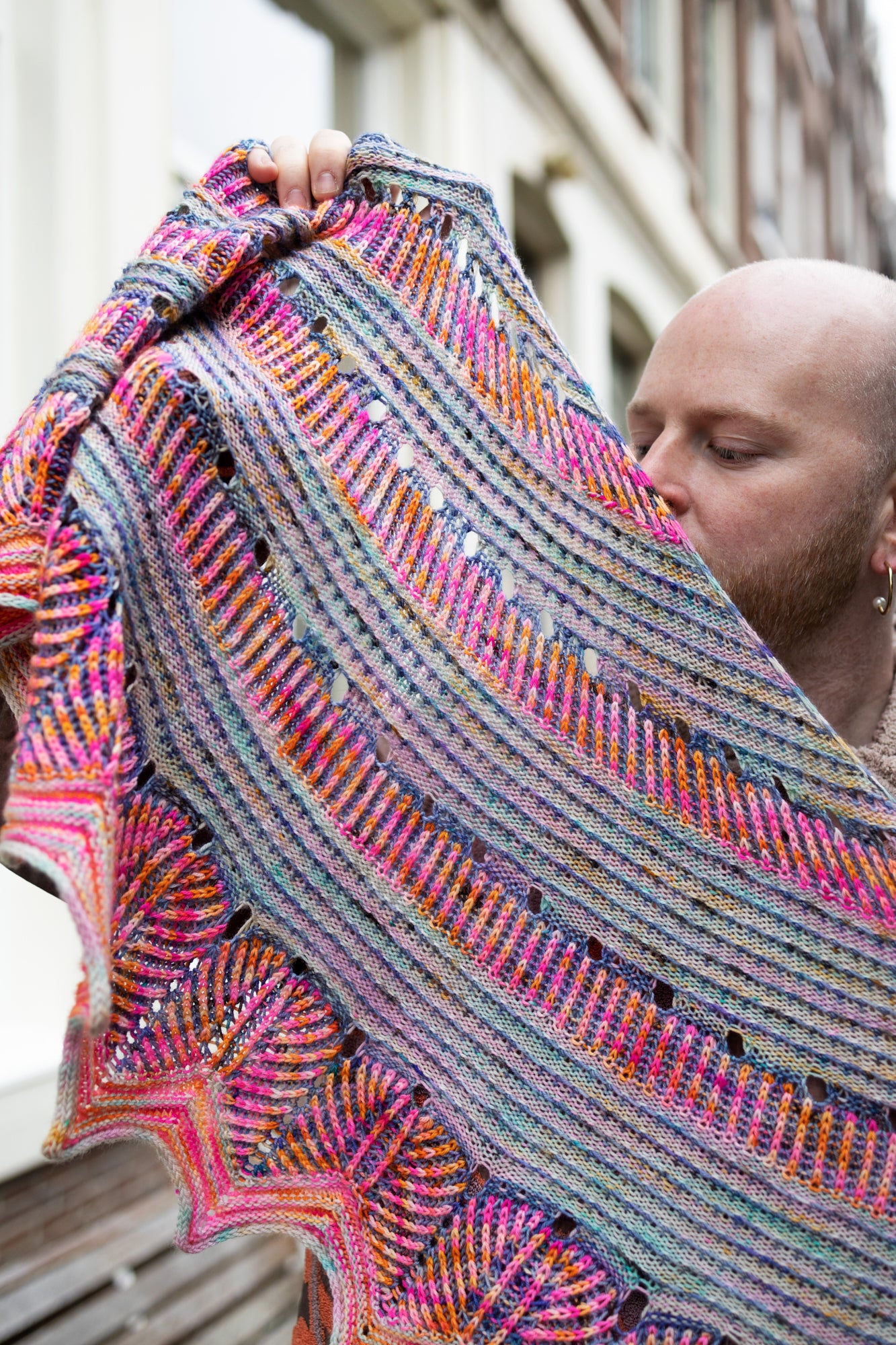 This playful shawl from Westknits was designed to showcase the beautiful collectible skeins from Punk Rock Unicorn, hand dyed especially for Love Yarn Madrid 2024. Short row panels encrusted with tiny decorative bobbles are separated by dynamic bands of two colour brioche. The shaped border frames your shawl and is made even neater with an i-cord cast off. You will get a stunning long shawl that displays any hand dyed trio perfectly.