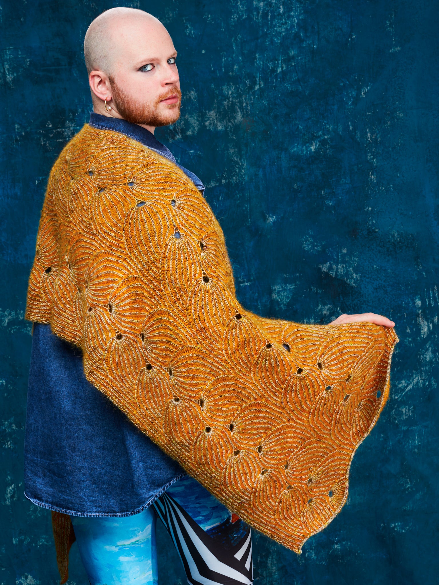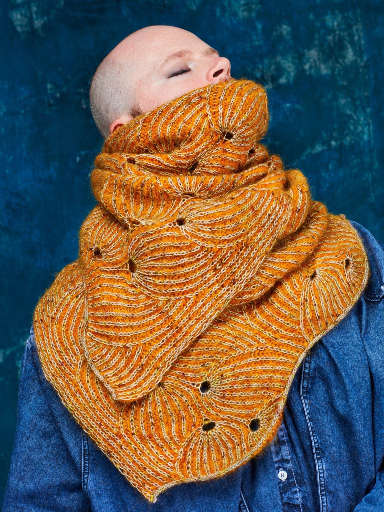 Chose two beautiful colours to knit this wide lacy brioche wrap. Large increases form the striking holes in two-colour brioche that meander throughout the design. Qing Fibre’s Yak Single yarn shines together with the super soft Melted Baby Suri Alpaca peeking from the background. These two luxurious yarns create a gorgeous fabric that is oh so soft to wear.