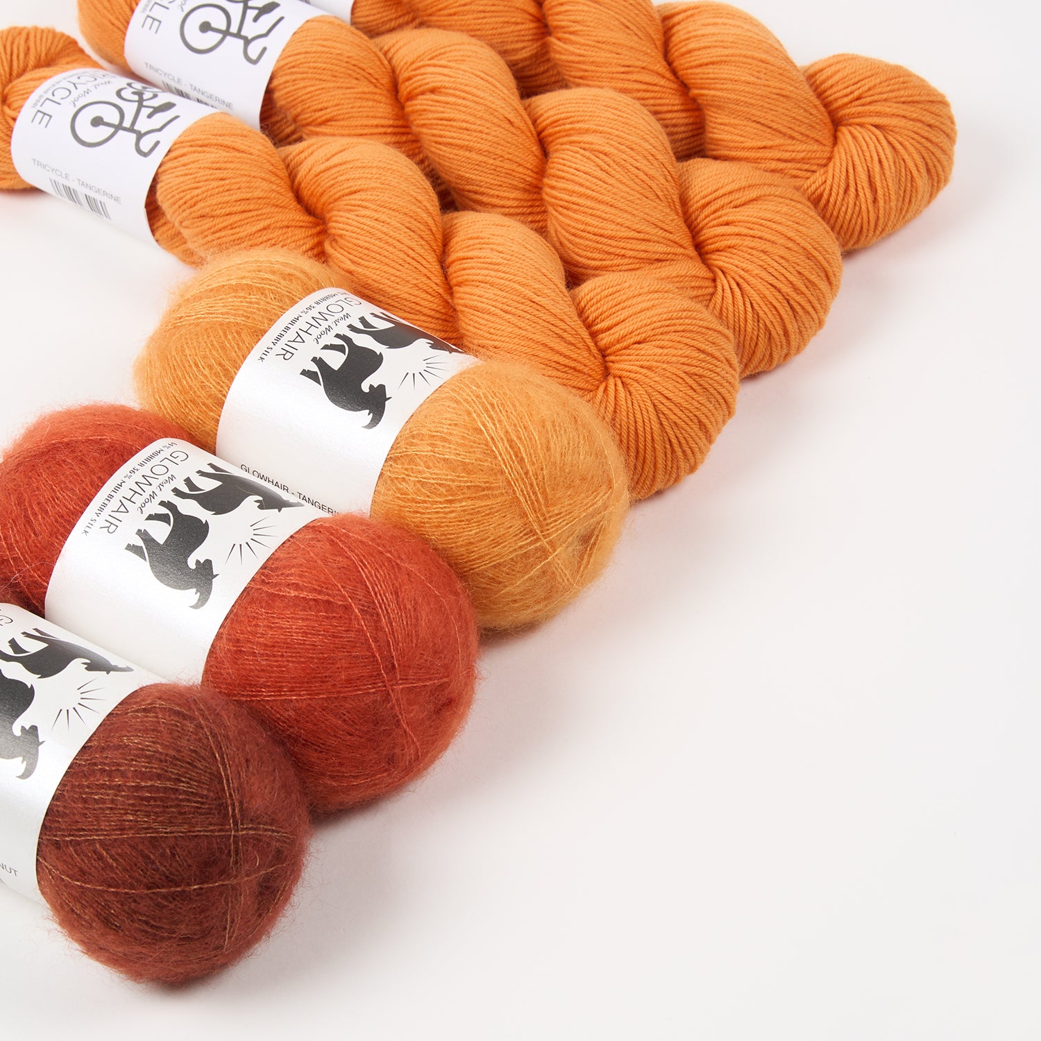 This stunning kit from West Wool contains three skeins of fingering weight yarn in a single colour and three balls of mohair in three contrasting colours. If you need inspiration, it can be used to knit the gorgeous Glowhair Frost Cowl from Westknits.