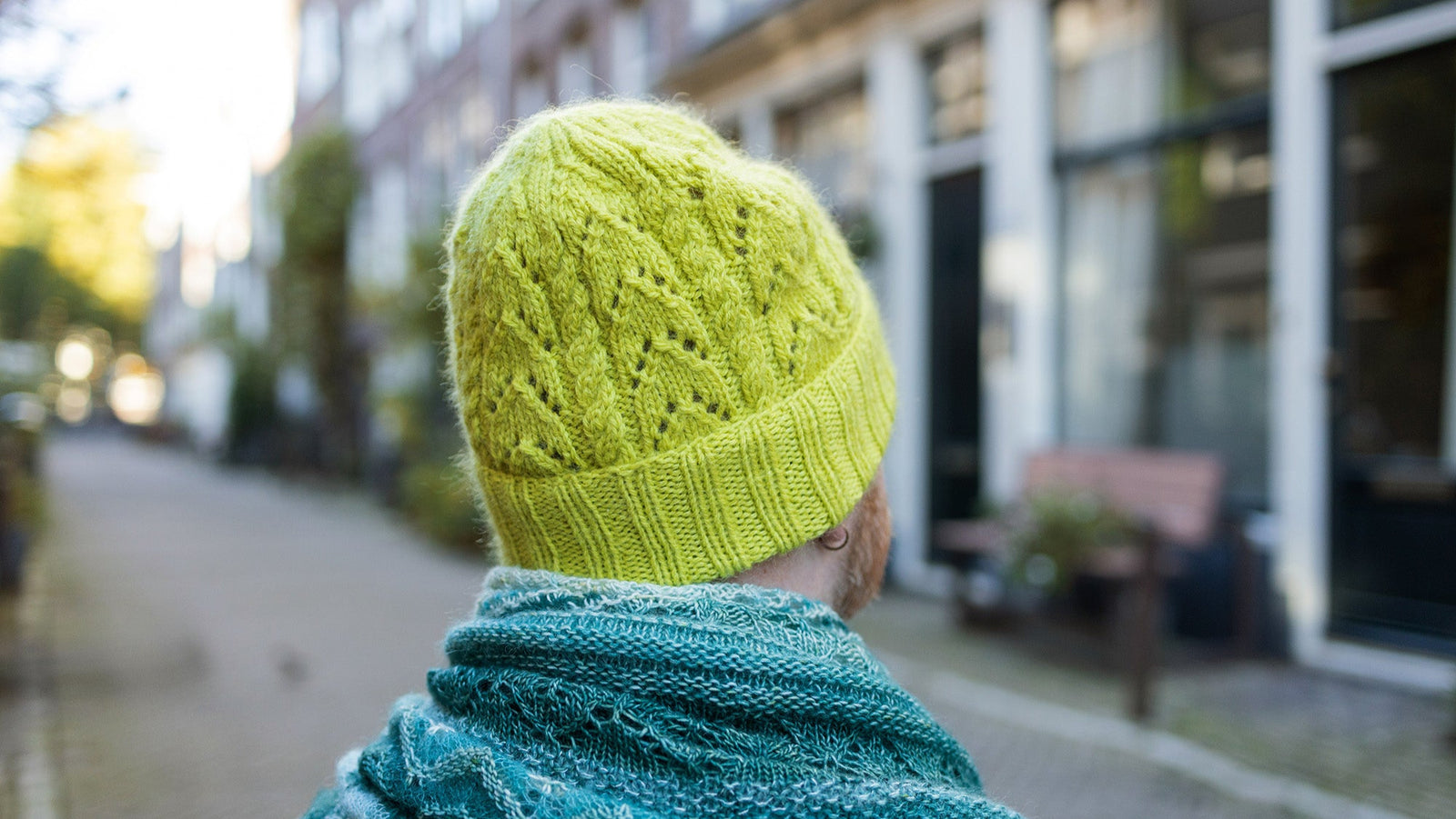 Choose your favourite stunning solid colour of West Wool's deliciously squishy DK Tandem and hold it together with a matching strand of lace weight Glowhair. The mohair adds a frothy halo to the hat while you work the beautiful lace and cable pattern. This quick-to-knit hat makes a perfect gift!