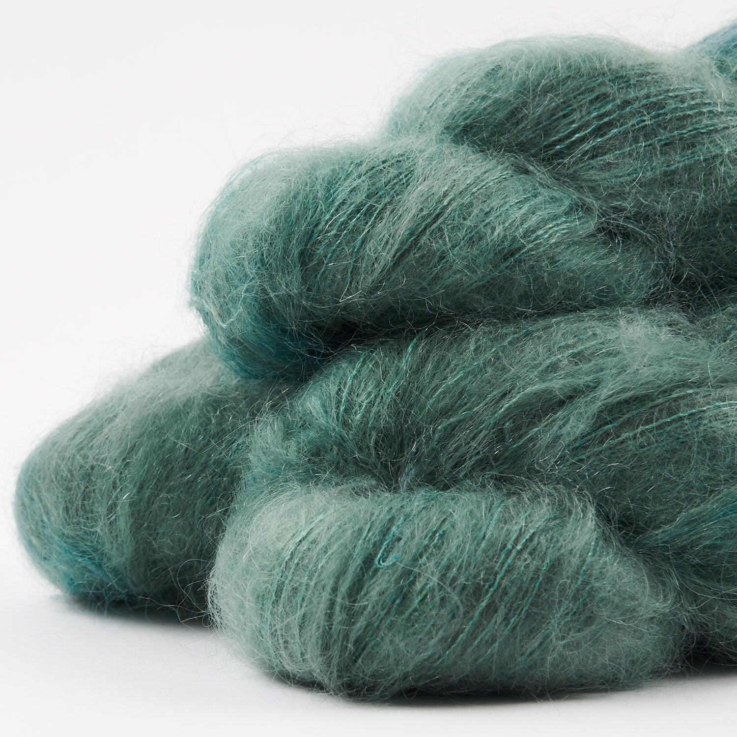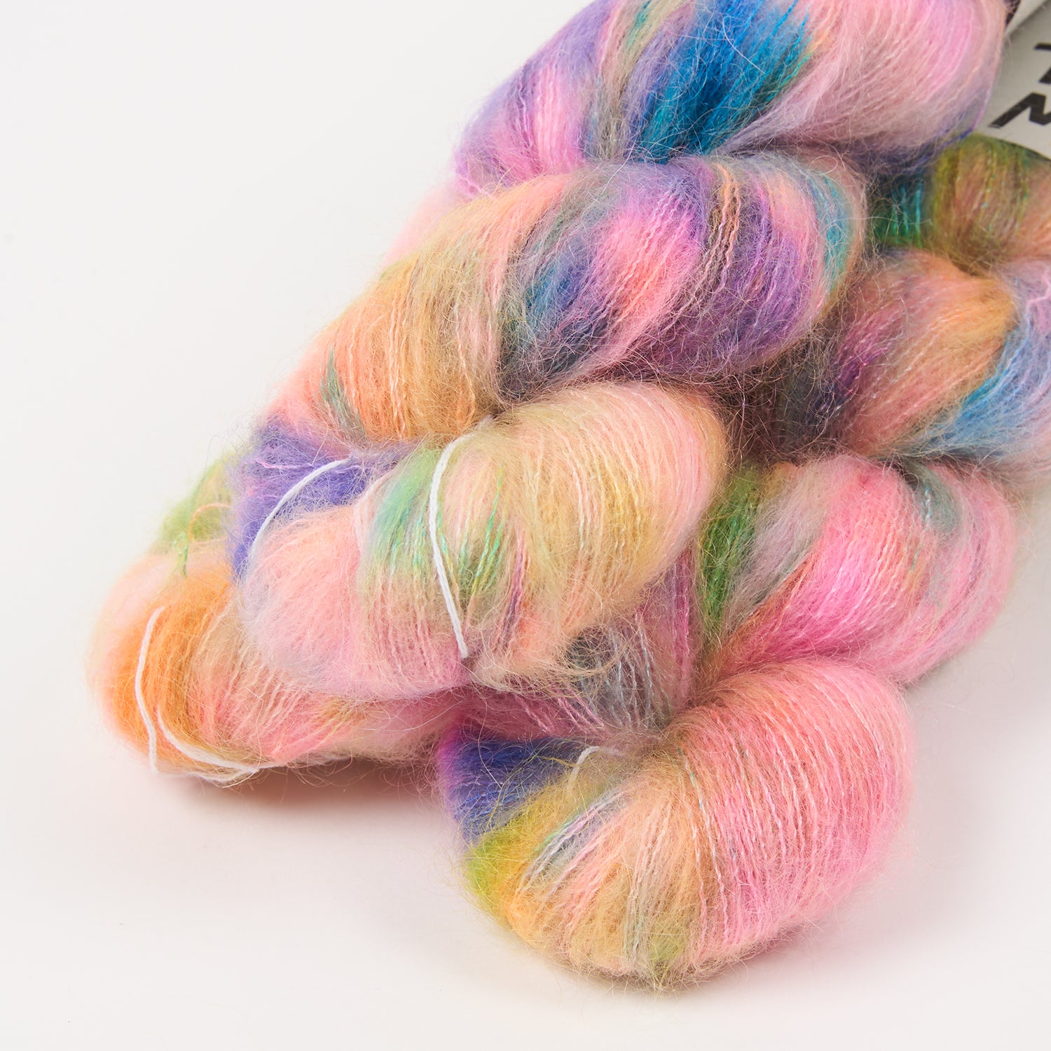 WALK Collection’s Kid Mohair Lace is a light and silky blend of mohair and silk that results in a soft and fluffy yarn texture. Hand-dyed in Germany, this lace weight yarn is the perfect combination of classic brushed mohair fibres and shiny silk. Beautifully suited to lace knitting, this warm and fuzzy yarn works wonders when combined with thicker weights for adding a textural halo to your fabrics. We love WALK Collection’s bold colour palette that enhances any project.
