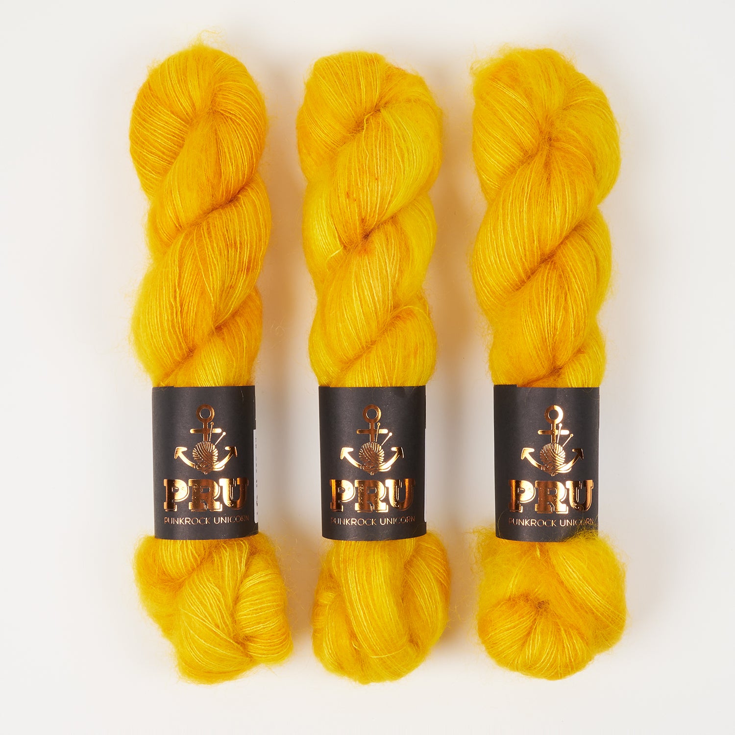 This lace weight yarn from Punk Rock Unicorn is ideal for dream like floating fabrics or adding a fun textural pop when held together with other yarns.