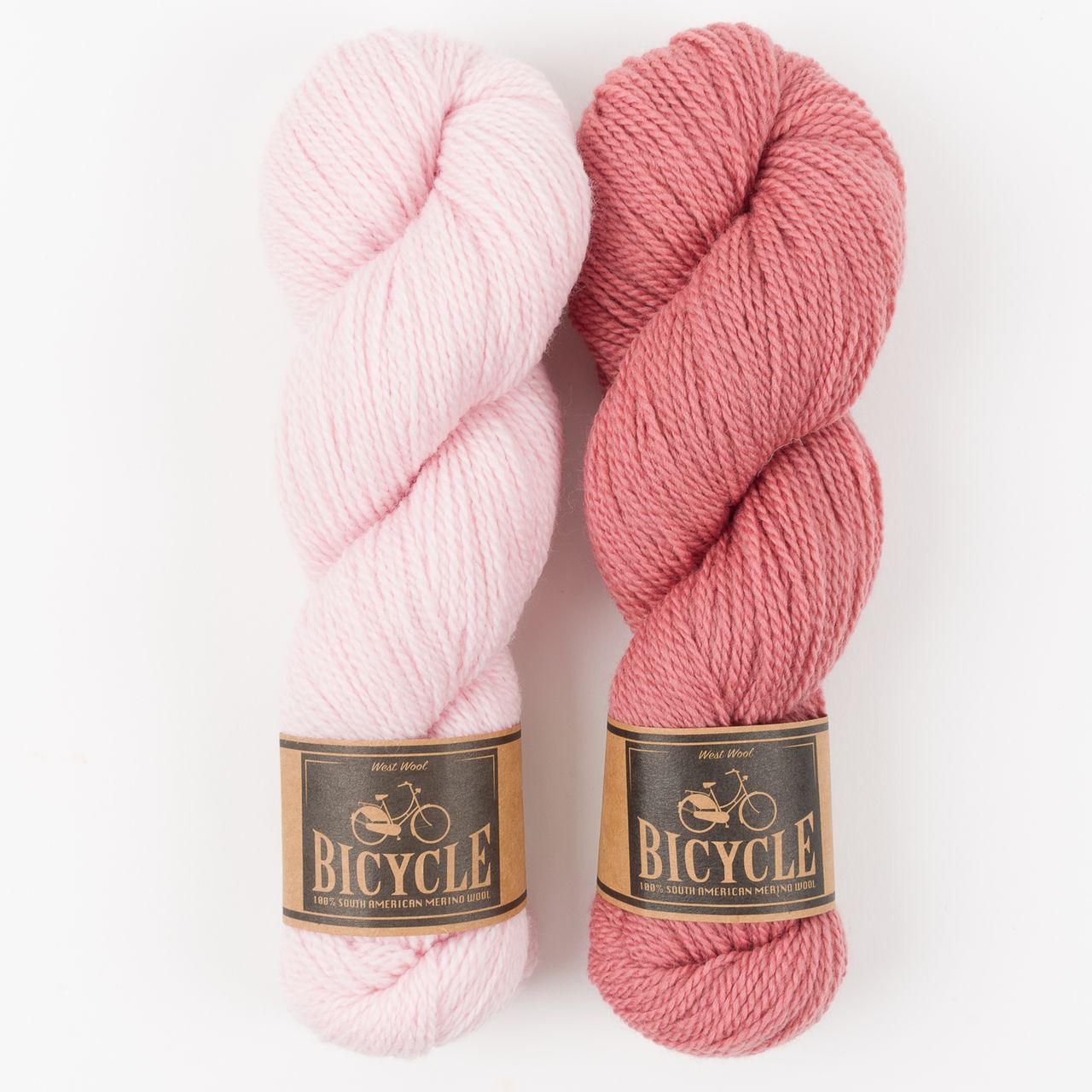 This kit comes with West Wool Bicycle in Roswitha and Powder and a Westknits Pattern Download Code.