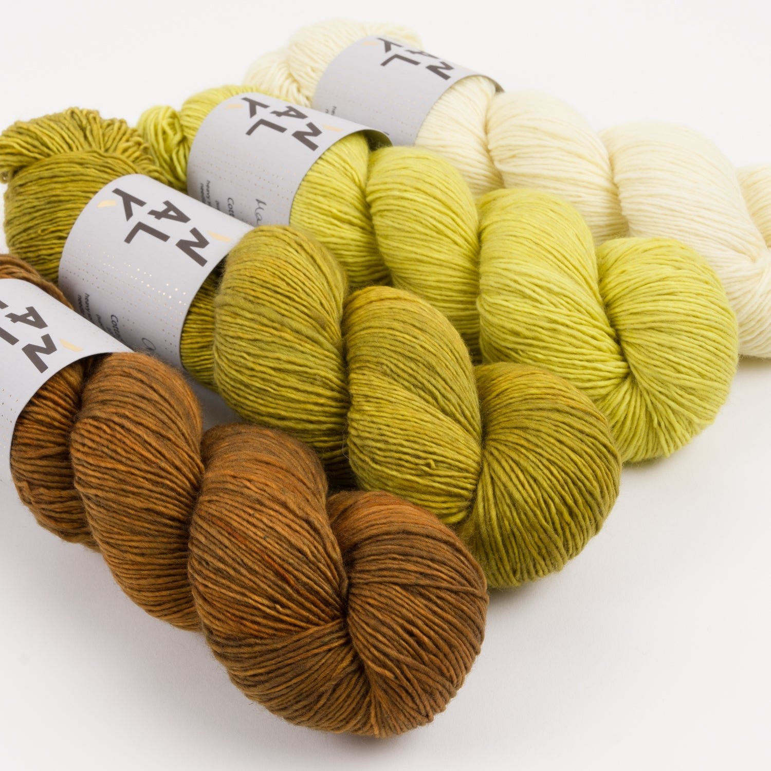 Yarn Requirements: Four skeins of fingering weight yarn in four contrasting colours.