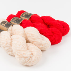 Yarn that is dyed in batches may have some variation in colour between skeins taken from different lots. We take great care in photographing our kits and yarns accurately, however colours may vary slightly from the pictures.