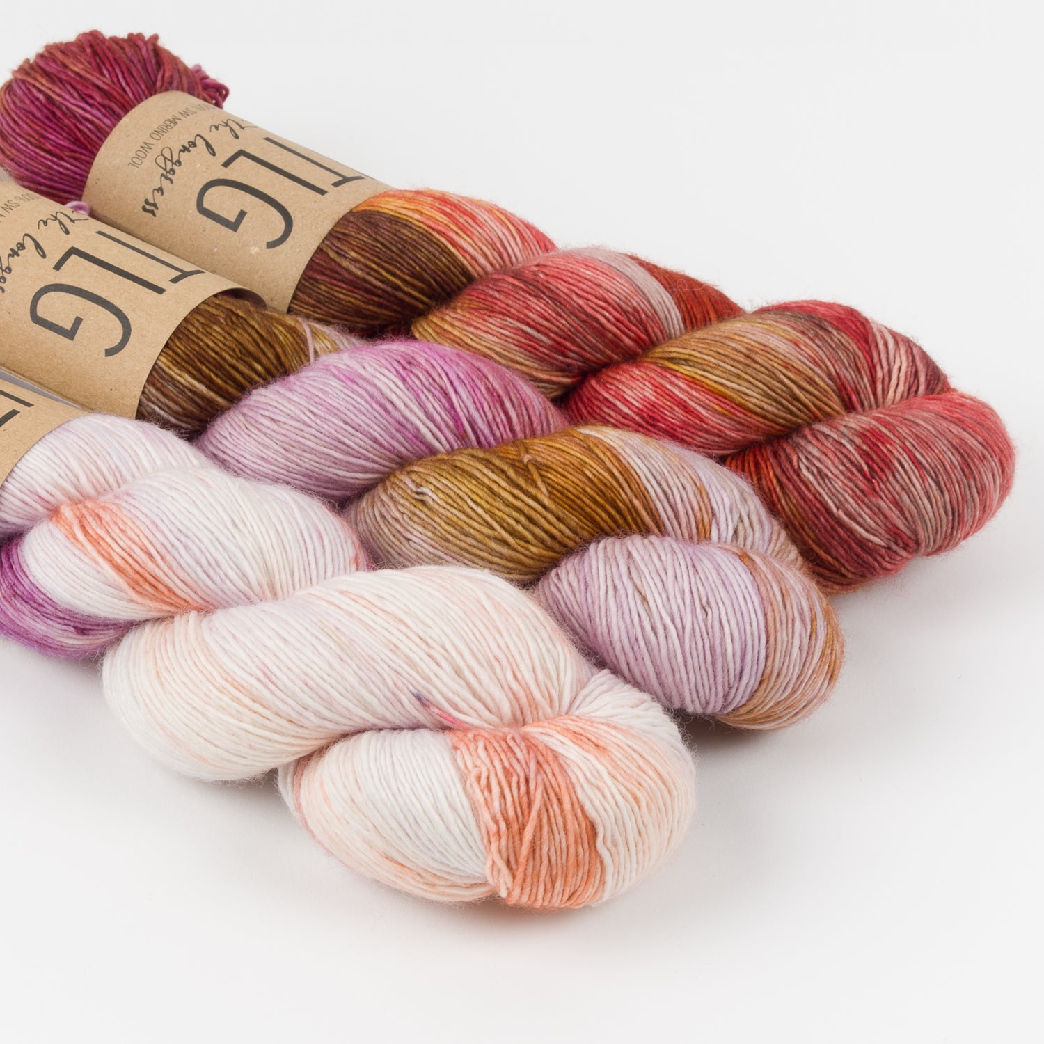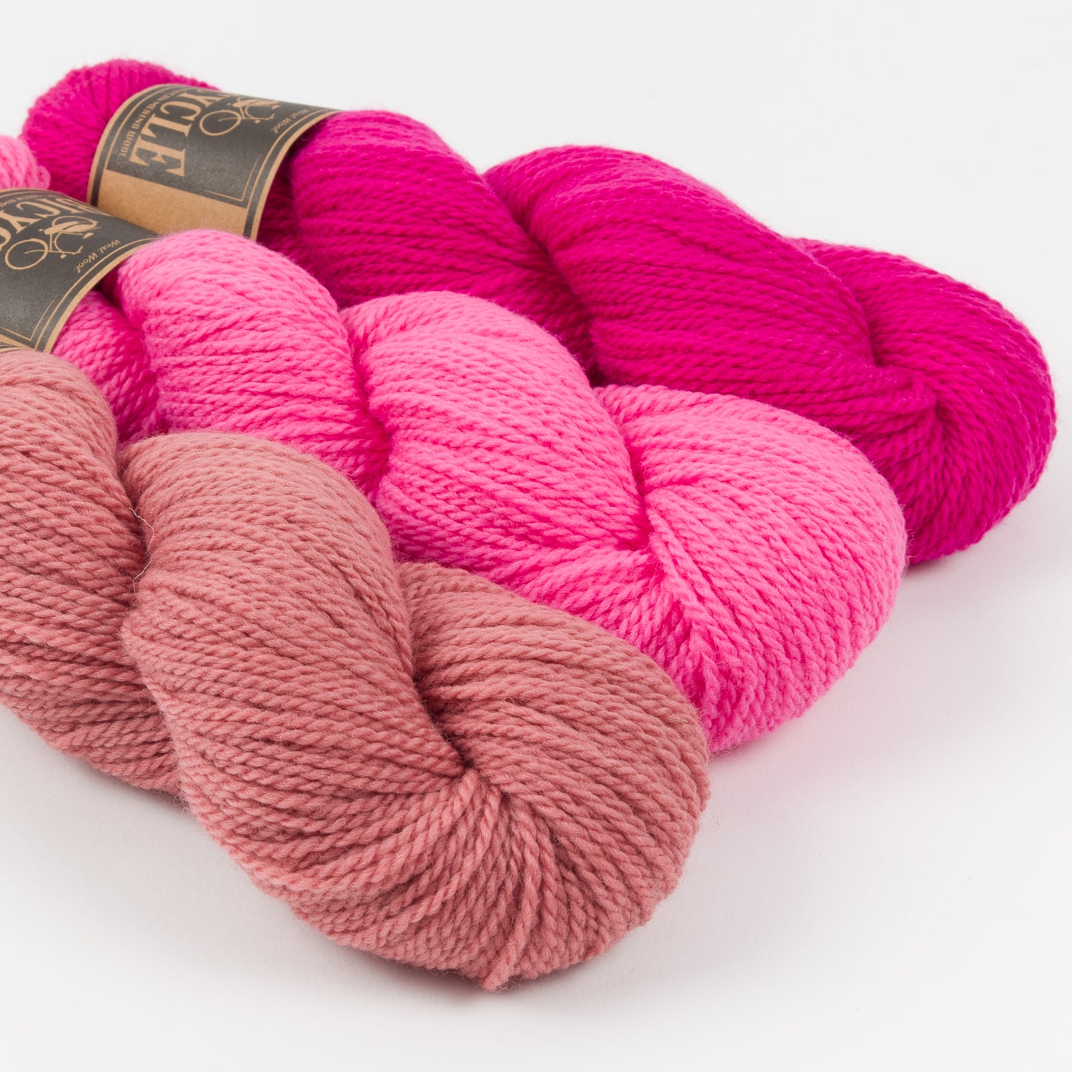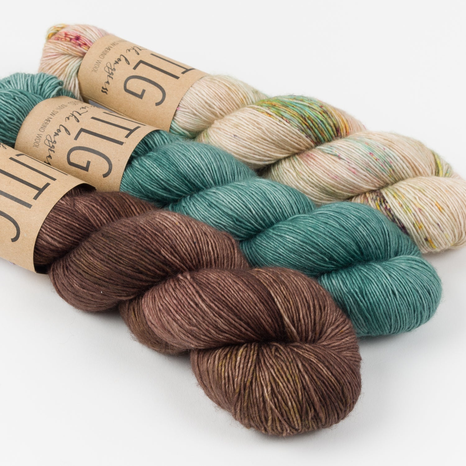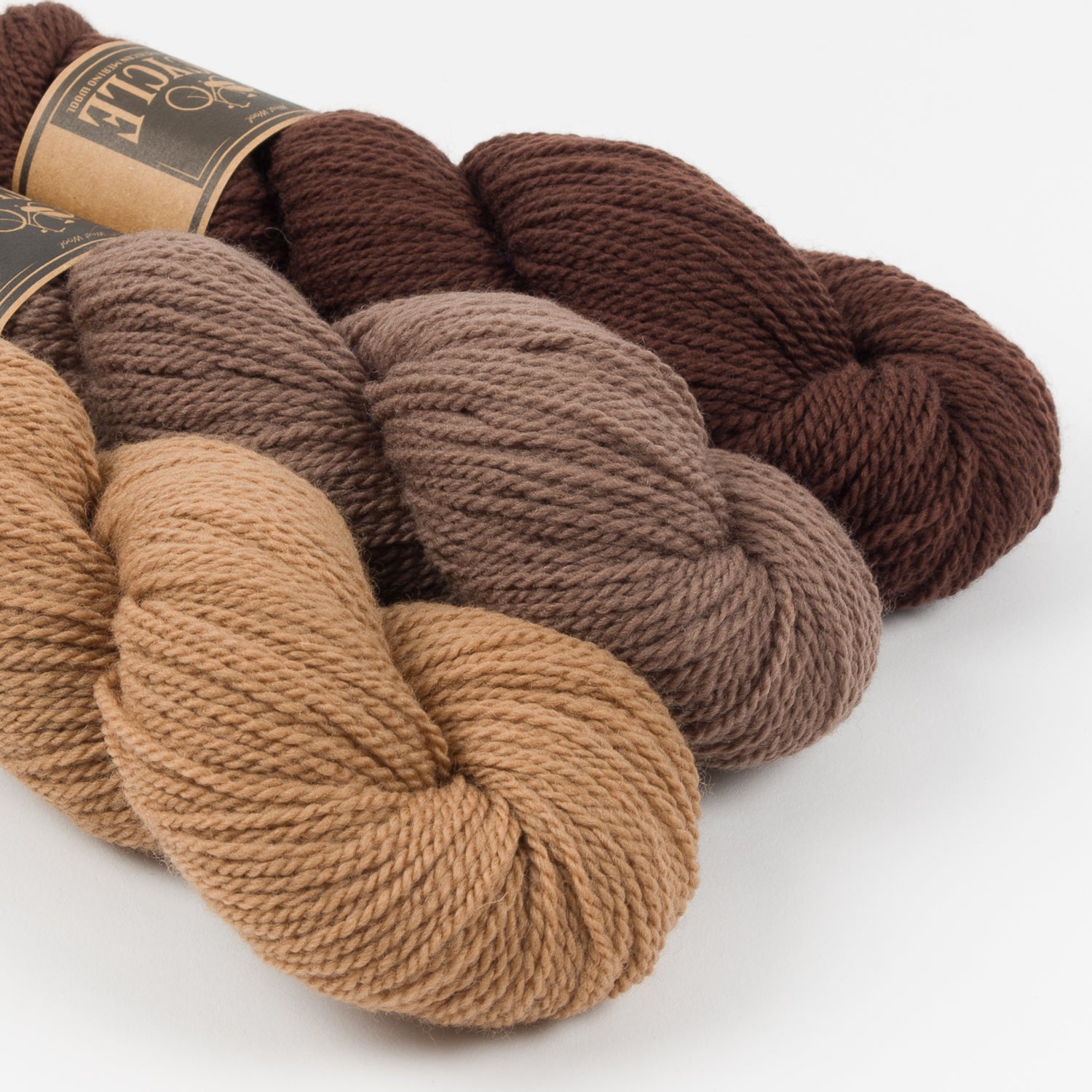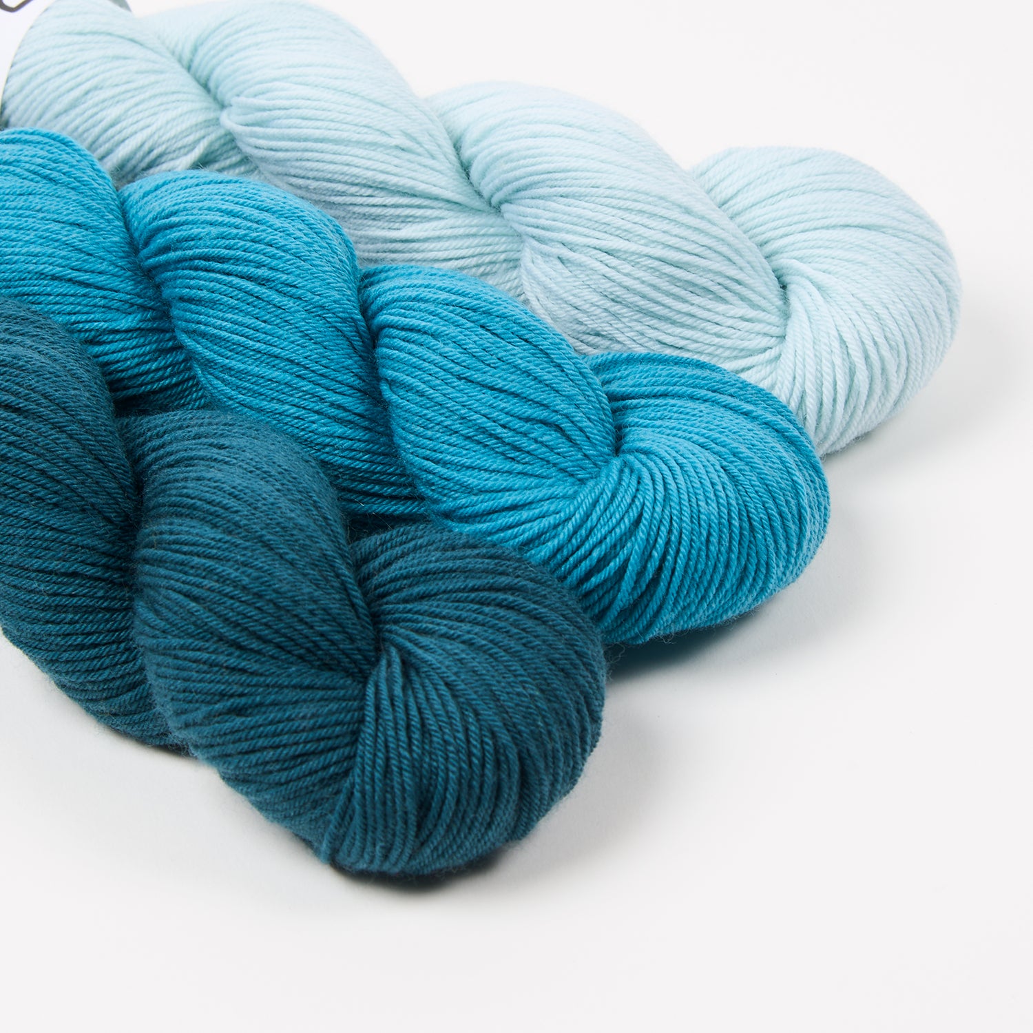 Yarn Requirements: Three skeins of fingering weight yarn in three colours.