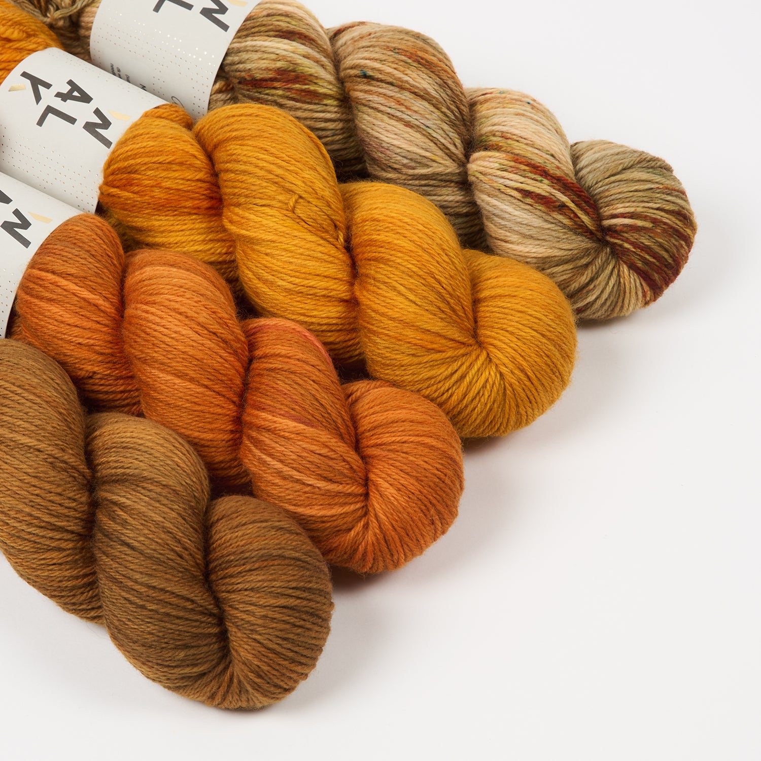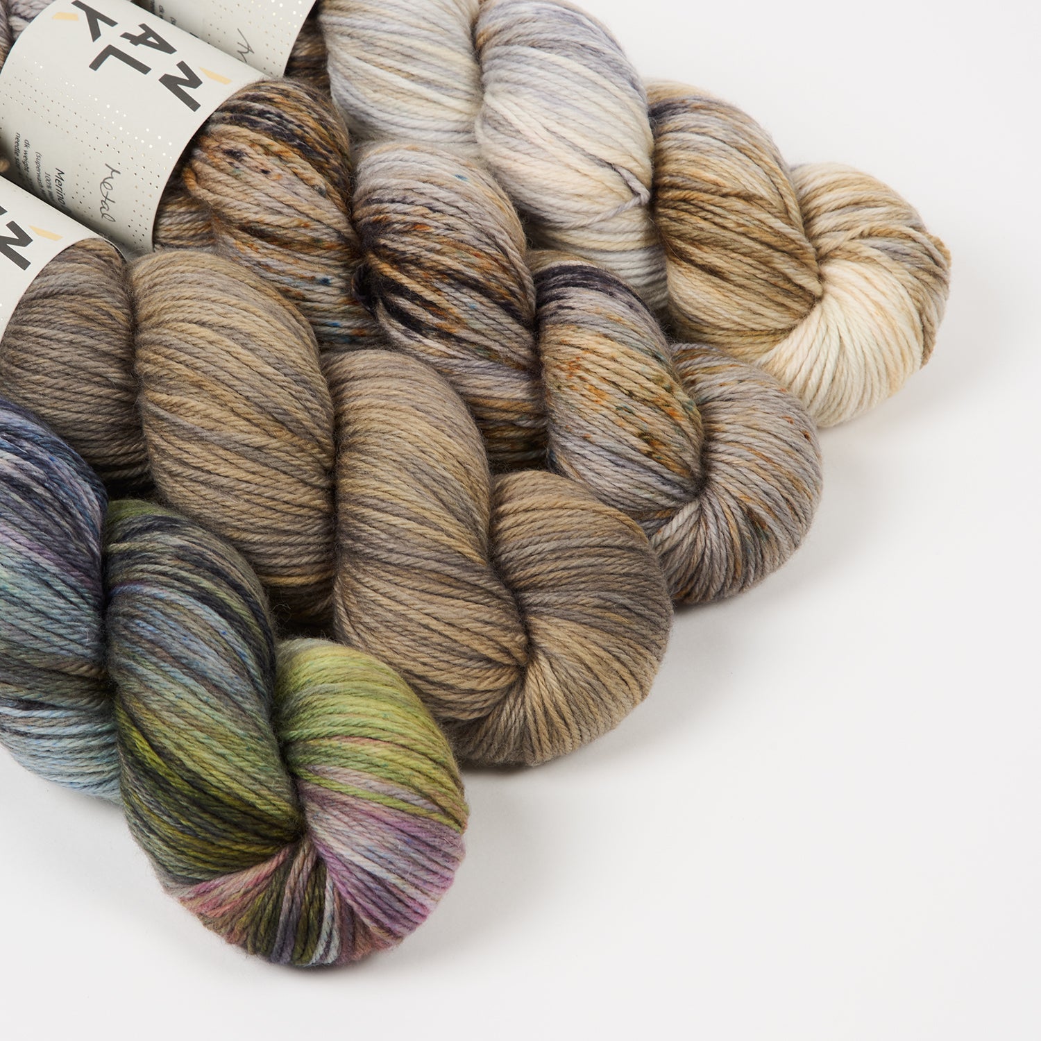 If you love blending yarn together in a top-down shawl, then the Pierre Shawl is the perfect project for you! Choose your favourite kit featuring four skeins of DK weight yarn in four fading colours and start knitting this Westknits favourite. Bands of stripes, twisted ribbing, and textured triangles compose this fun-to-knit shawl. The DK weight gauge results in a surprisingly quick knit for you to wear during moody winter nights.