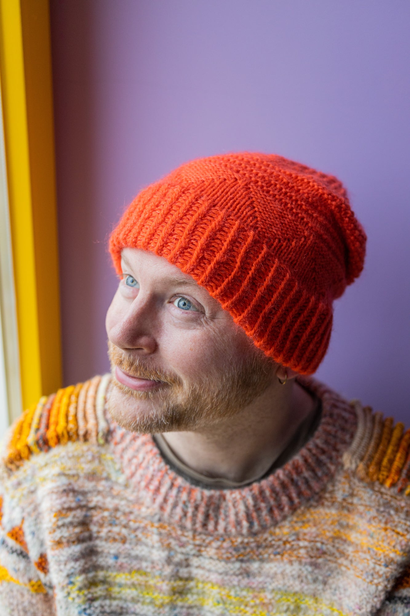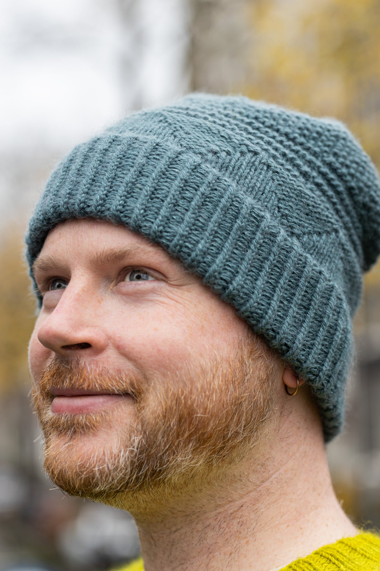 The Pierre Hat is a beginner-friendly pattern knitted combining one strand of DK weight yarn together with one strand of lace weight mohair silk, which adds a delicate halo to the crisp stitches. This cosy pattern begins with 1x1 twisted ribbing that is folded to create a double thick hem. The body of the hat is filled with textured stitches in a triangle motif, garter ridges, and seed stitches. Choose your favourite West Wool kit featuring one skein of DK weight Tandem and one ball of fluffy Glowhair, and enjoy knitting this exquisite hat!