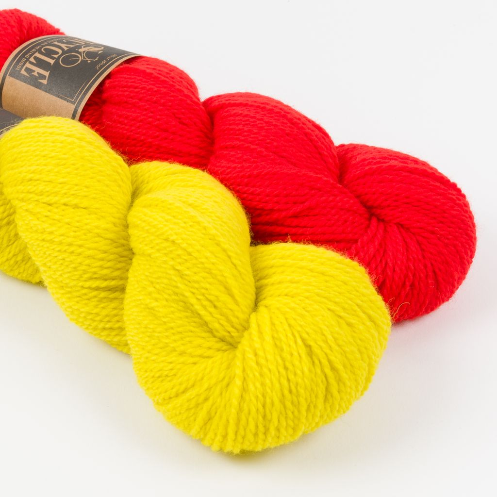 Yarn Requirements: 2 colours of fingering weight yarn, amount changes depending on size