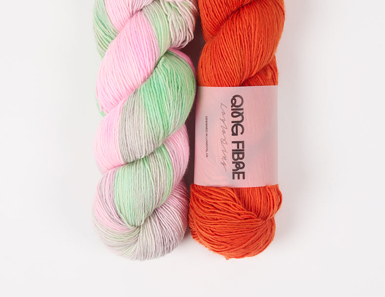 Soon she developed her signature colours and founded the exceptionally creative dyehouse Qing Fibre. Originally Layla attended art school and trained as a landscape designer. Today she runs Qing Fibre in South London with a team of like-minded creatives where they take great pride in dyeing each skein of yarn, making every one of them unique. Inspired by colour everywhere, Layla and her dye team work together using their eye for detail to create variegated ombrés and intense speckles which are a joy to look at. They pursue creative dyeing techniques and unique colours that have us constantly wowed. Qing Fibre release their yarns on 15 different bases sourced ethically from Peru and England.