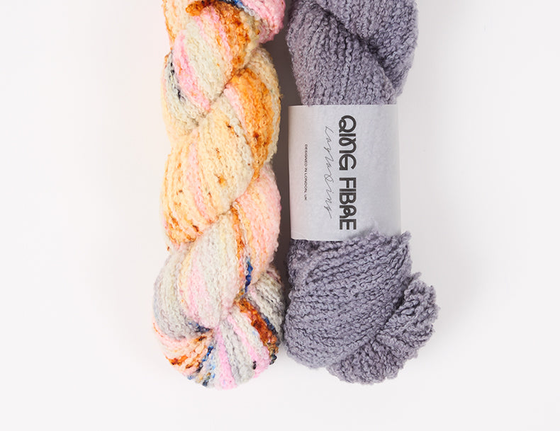Soon she developed her signature colours and founded the exceptionally creative dyehouse Qing Fibre. Originally Layla attended art school and trained as a landscape designer. Today she runs Qing Fibre in South London with a team of like-minded creatives where they take great pride in dyeing each skein of yarn, making every one of them unique. Inspired by colour everywhere, Layla and her dye team work together using their eye for detail to create variegated ombrés and intense speckles which are a joy to look at. They pursue creative dyeing techniques and unique colours that have us constantly wowed. Qing Fibre release their yarns on 15 different bases sourced ethically from Peru and England.