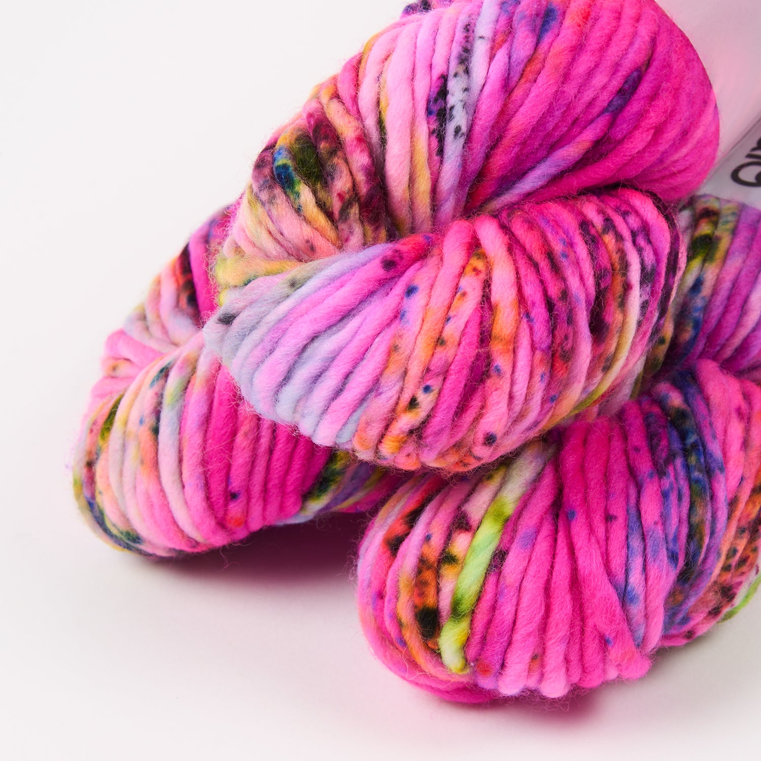 Layla Qing first introduced a virtual explosion of colourful yarns in 2016. Having been uninspired by the yarns available at the time, she set about dyeing her own.