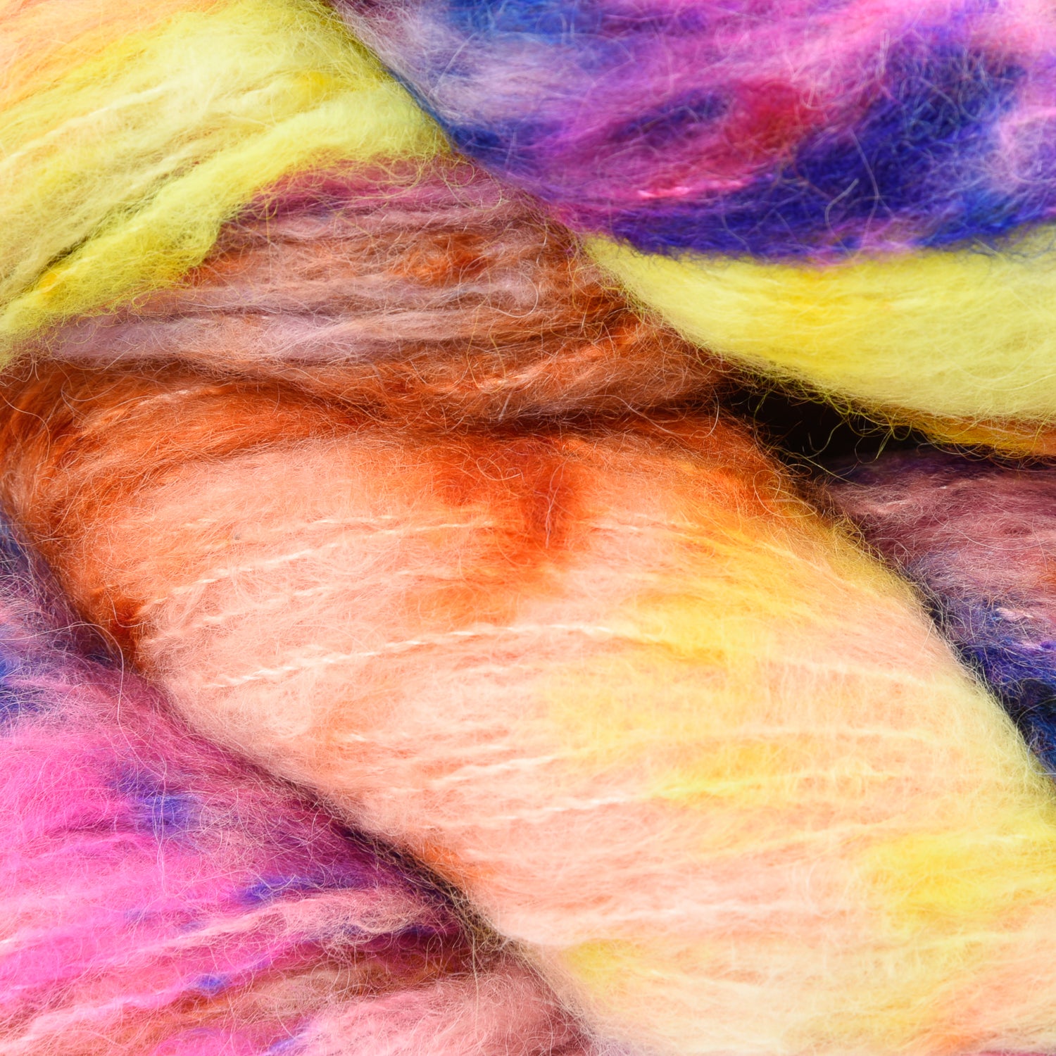 Qing Fibre’s Melted Baby Suri is a fluffy blend of Baby Suri Alpaca, Merino, and Silk. Perfect for cloudy soft garments and accessories.