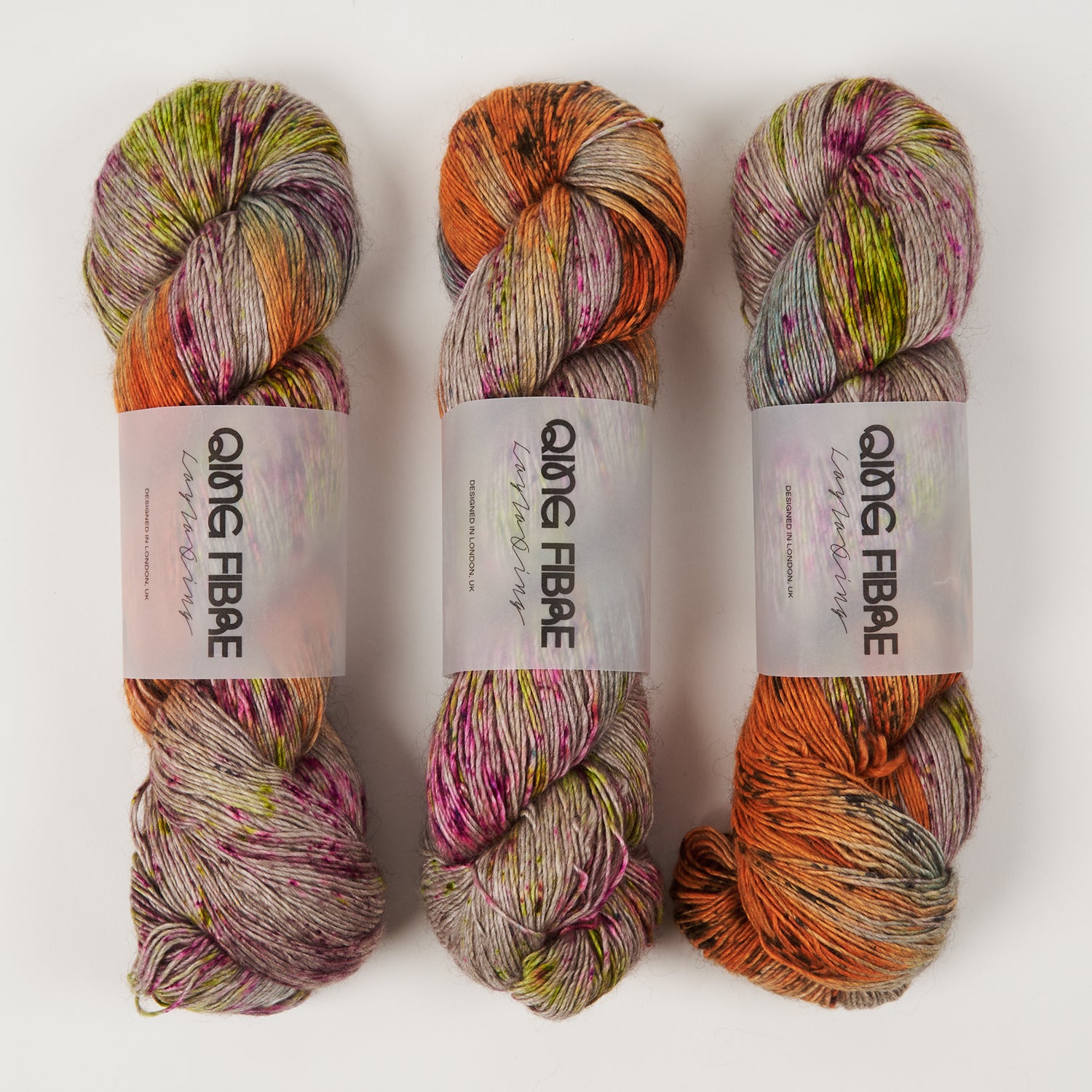 The lavish Yak Silk base from Qing Fibre is a dreamy blend of superwash merino, silk, and yak perfect for delightfully soft garments and accessories.
