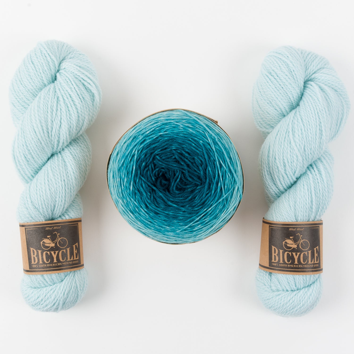 This beautiful four skein kit uses a solid yarn fromWest Wool together with a beautiful gradient fromBilum and is selected especially for patterns designed for this combination!
