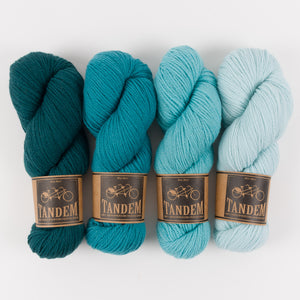 This wonderfully warm kit fromWest Wool contains four gorgeous skeins of DK weight yarn. If you need inspiration, it can be used to knit any of these Westknits shawls.