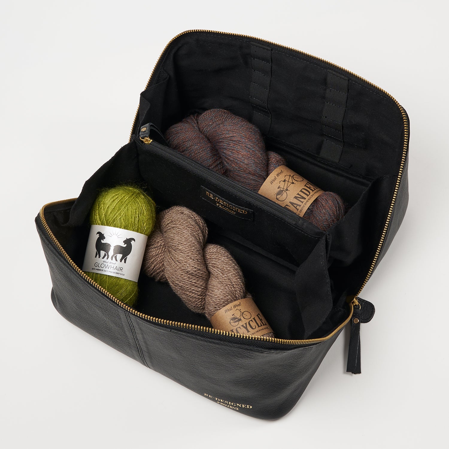 This gorgeous project bag from Re:Designed effortlessly folds open to hold your beautiful yarn. There are many slots and pockets for keeping your needles, notions, and hooks safe when you're on the move.
