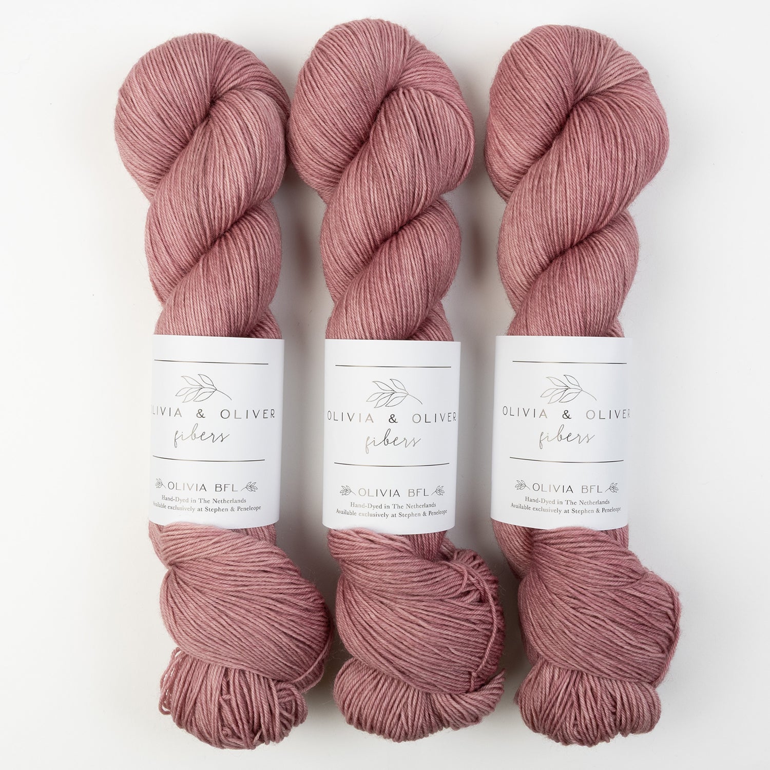 Olivia BFL from Olivia and Oliver is hand dyed and beautifully pilling resistant for unique and long lasting projects.