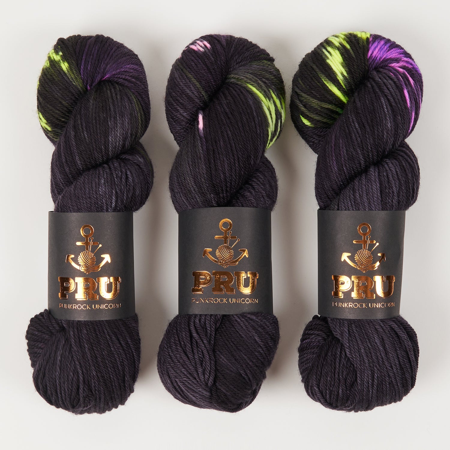 Punk Rock Unicorn's Soul DK is a perfect blend of superwash merino and nylon, ideal for long lasting projects, including extra warm and cosy socks!