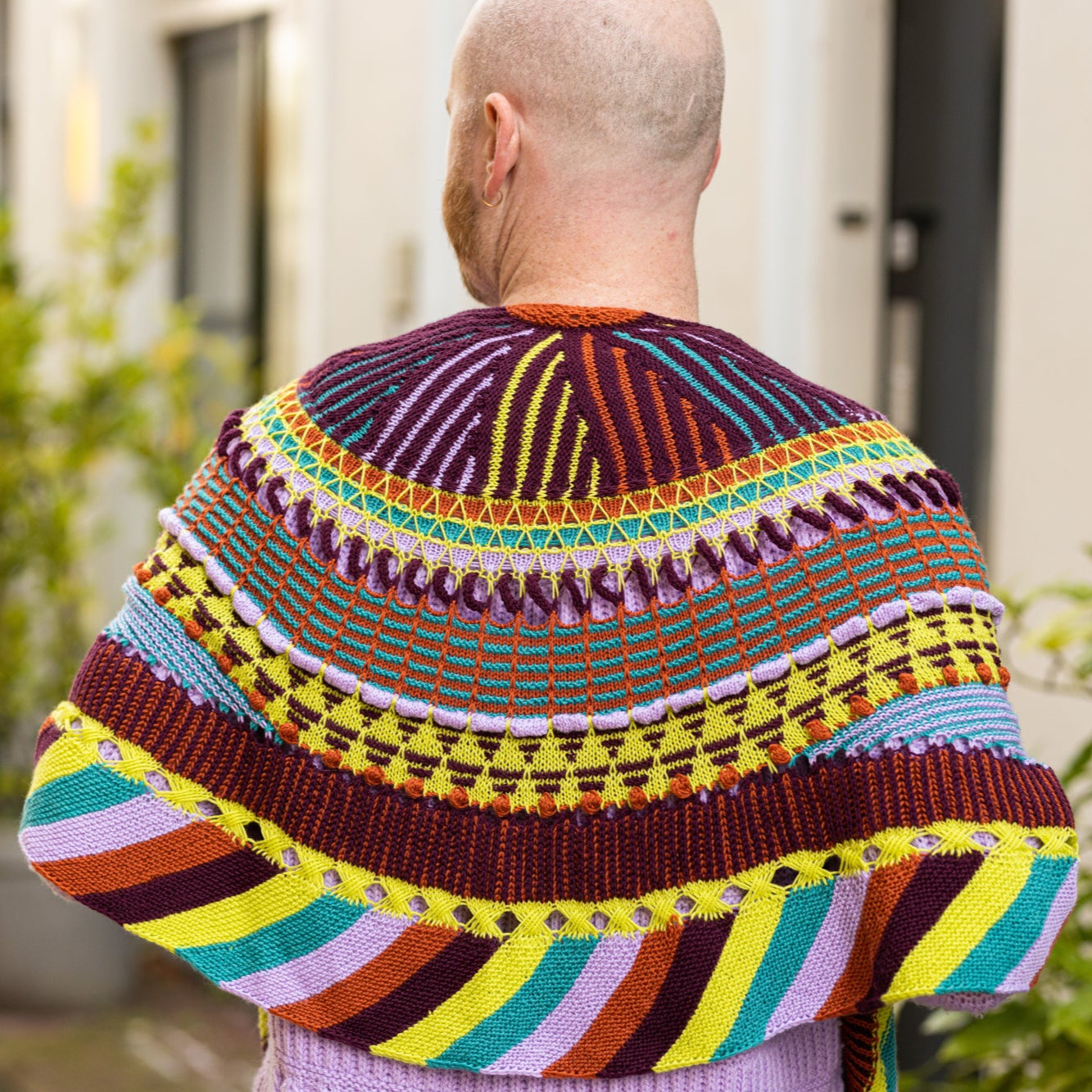 This semi-circular shawl was originally published as the Westknits Mystery Shawl Knit Along in 2021. Choose five contrasting colours of fingering weight yarn and enjoy all of the fun textures throughout this shawl. Stripes, short rows, slip stitches, I-cord loops, bobbles, and welts all contribute to the colorful collage of knitted fabric.