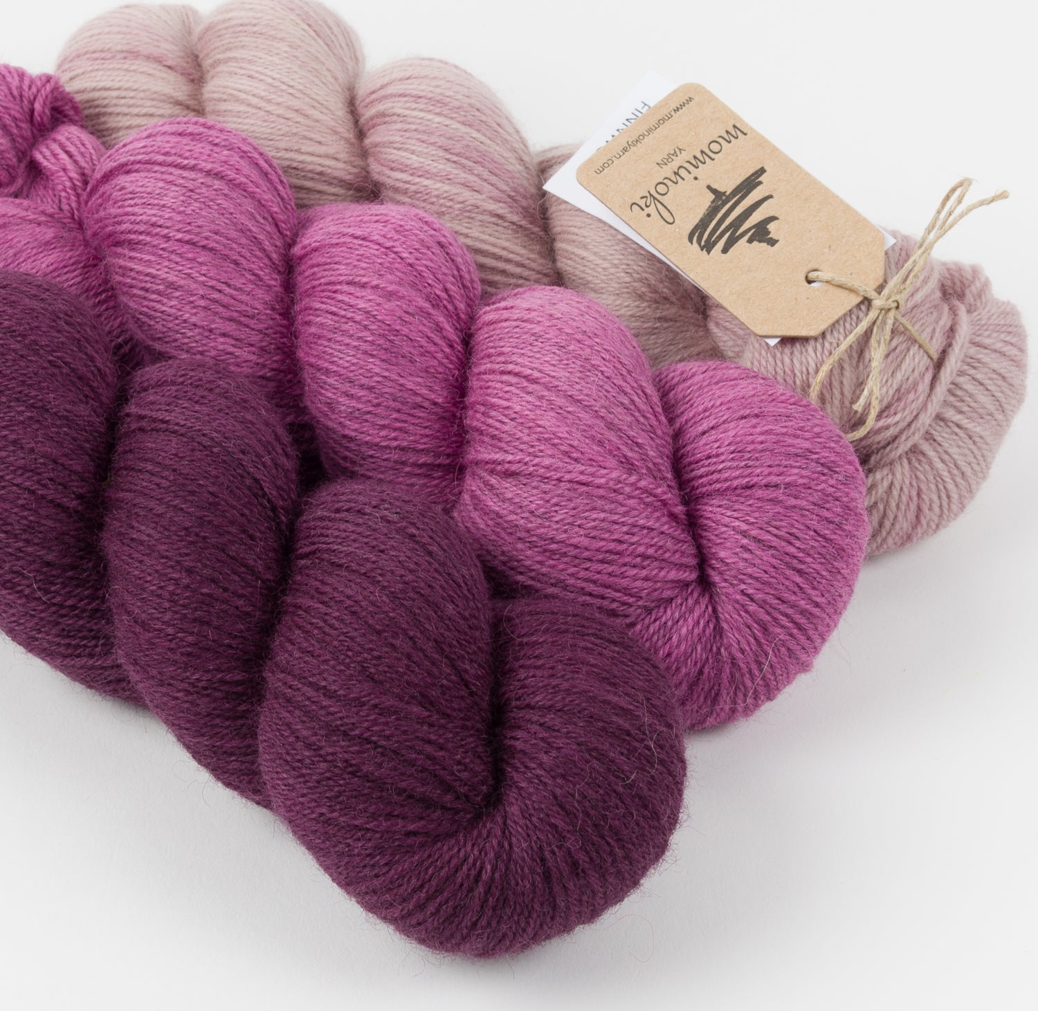 Yarn Requirements: Three skeins of fingering weight yarn in three colours