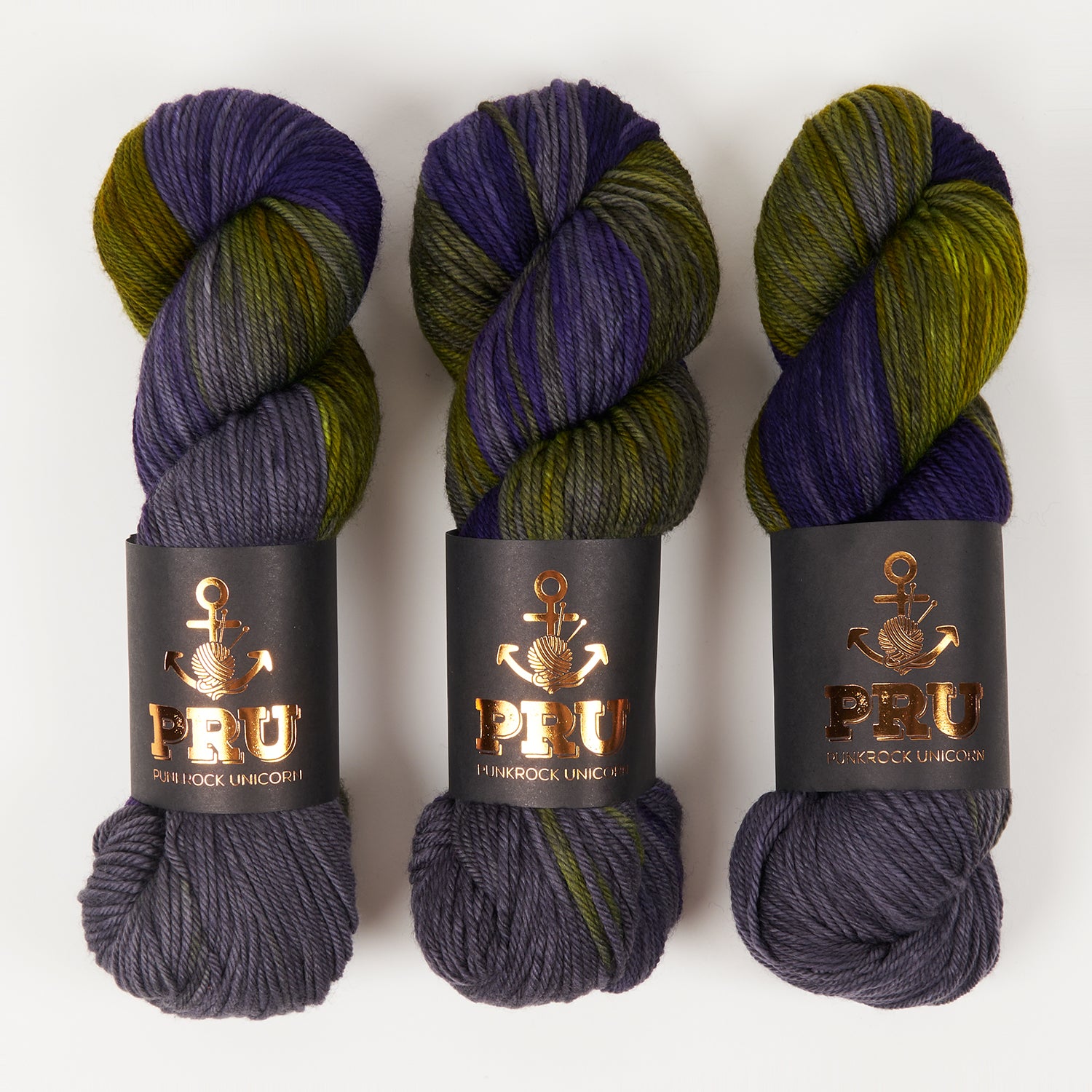 Punk Rock Unicorn's Soul DK is a perfect blend of superwash merino and nylon, ideal for long lasting projects, including extra warm and cosy socks!