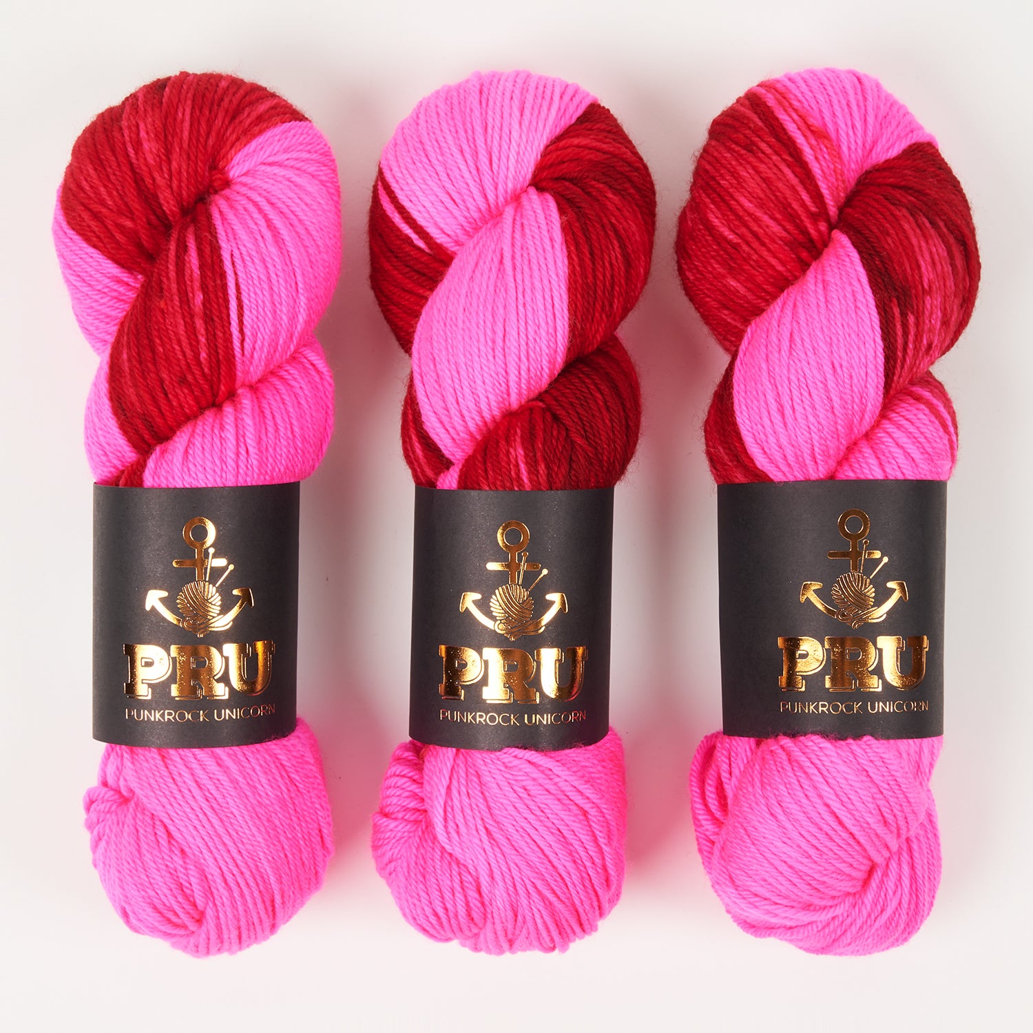 Punk Rock Unicorn's Soul DK is a perfect blend of superwash merino and nylon, ideal for long lasting projects, including extra warm and cosy socks!