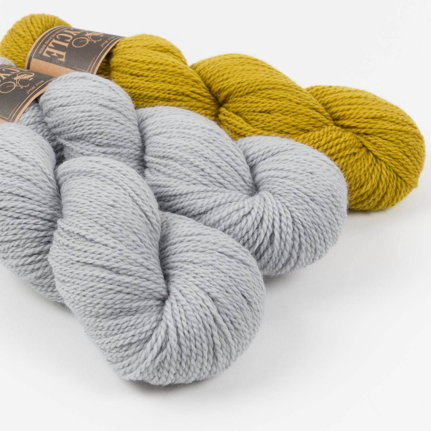 This gorgeous kit from West Wool contains six skeins of fingering weight yarn in two beautiful colours. If you need some inspiration, they can be used to knit any of these Westknits shawls
