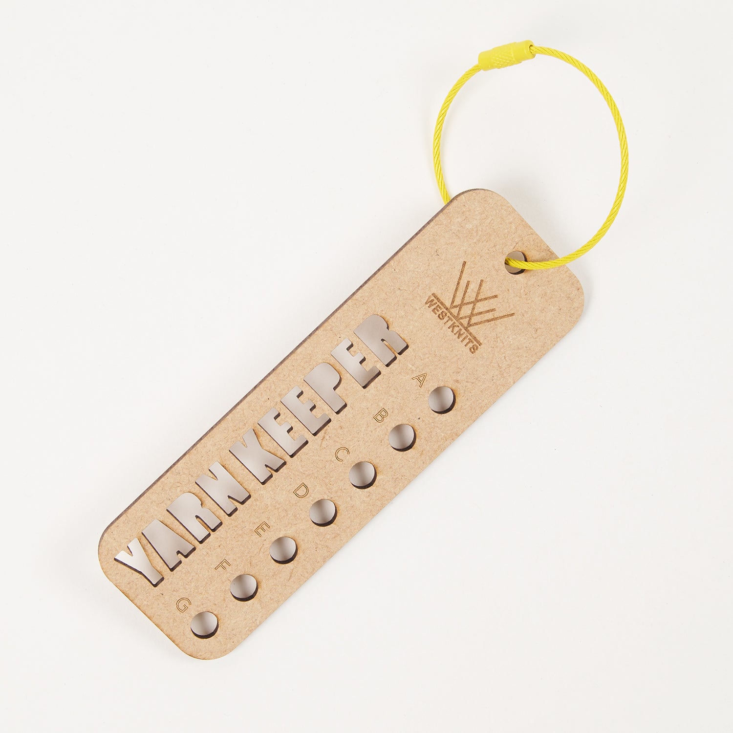 With this Westknits Yarn Keeper, you can keep track of all the colours on your multi-colour project! The yellow hoop can be used to attach it to your knitting bag or keychain.