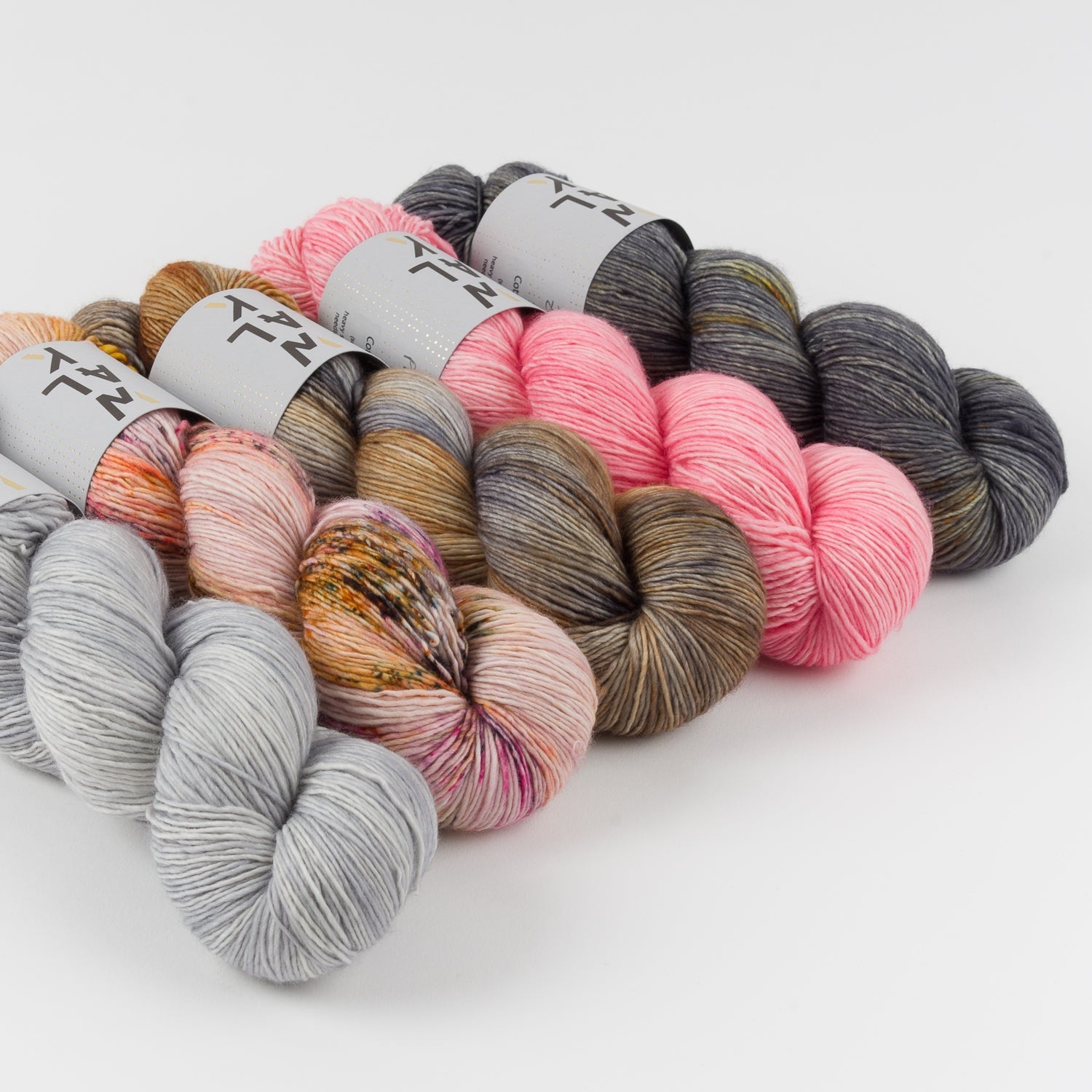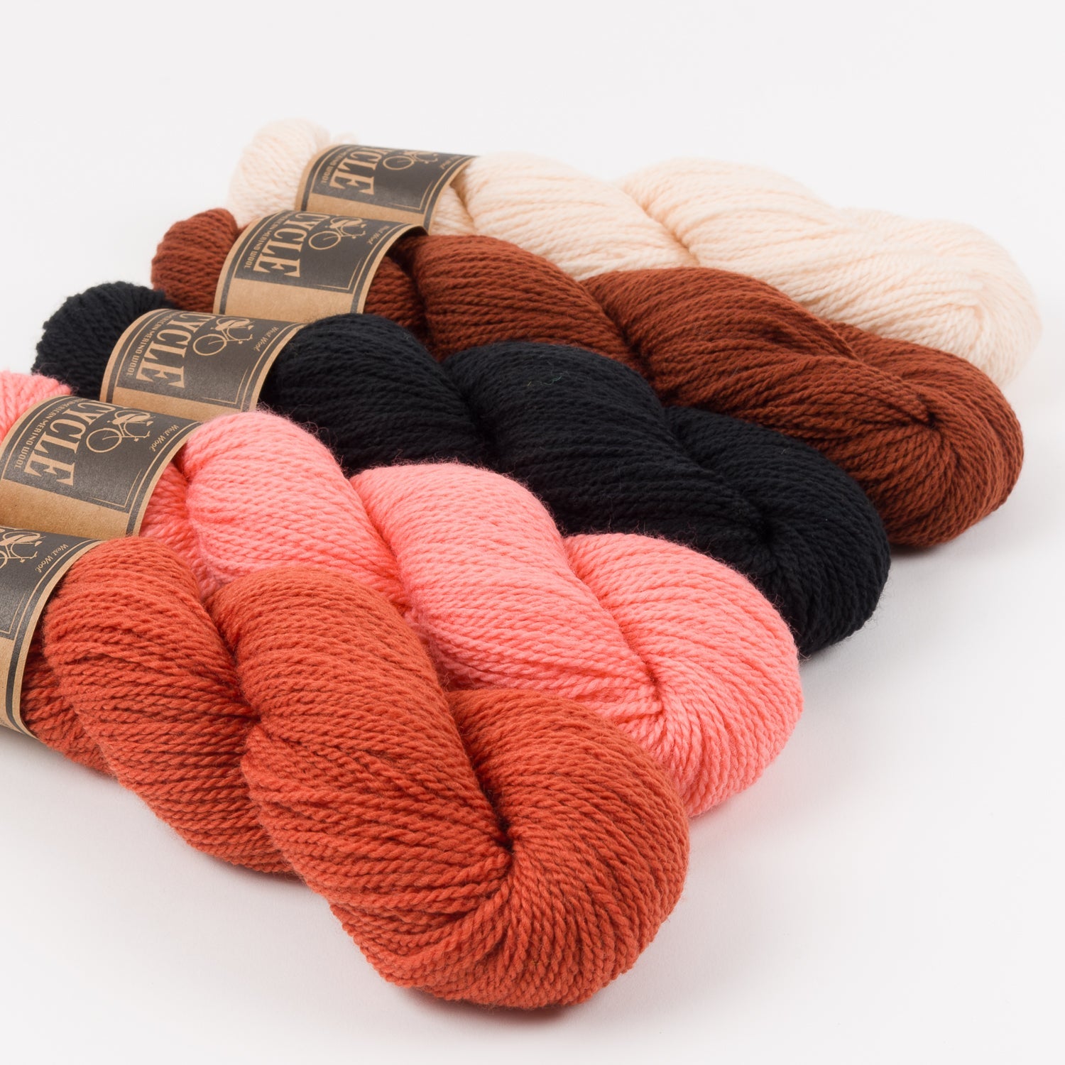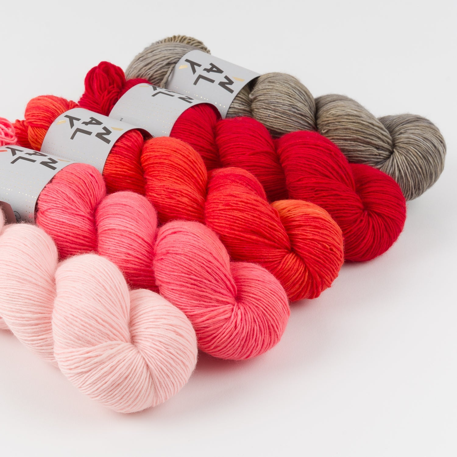 Yarn Requirements:500g fingering weight yarn in five coloursThis kit includes a Westknits pattern download code that can be redeemed for this or another Westknits pattern of your choice. You will receive your code once your order is shipped and it can then be redeemed on Ravelry!
