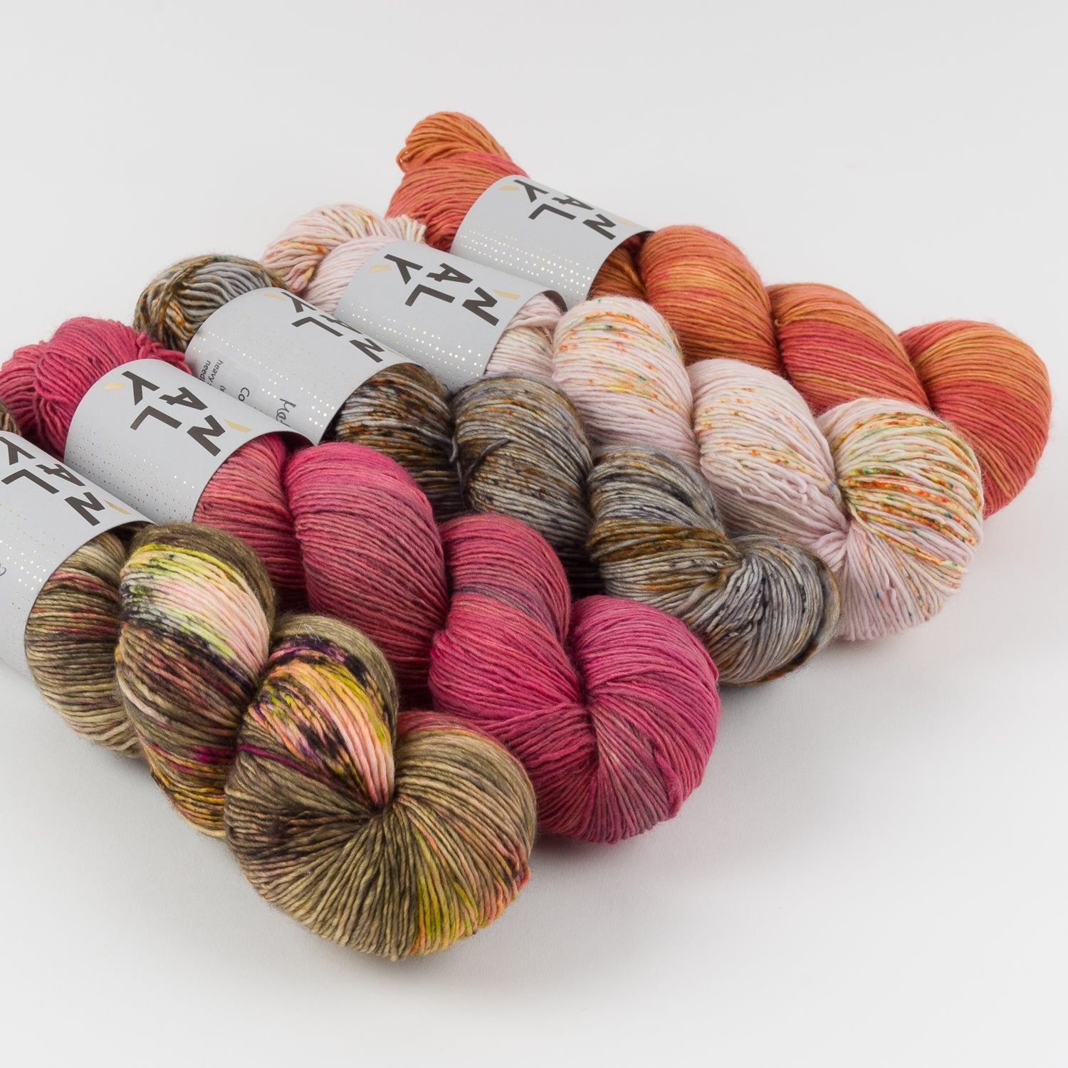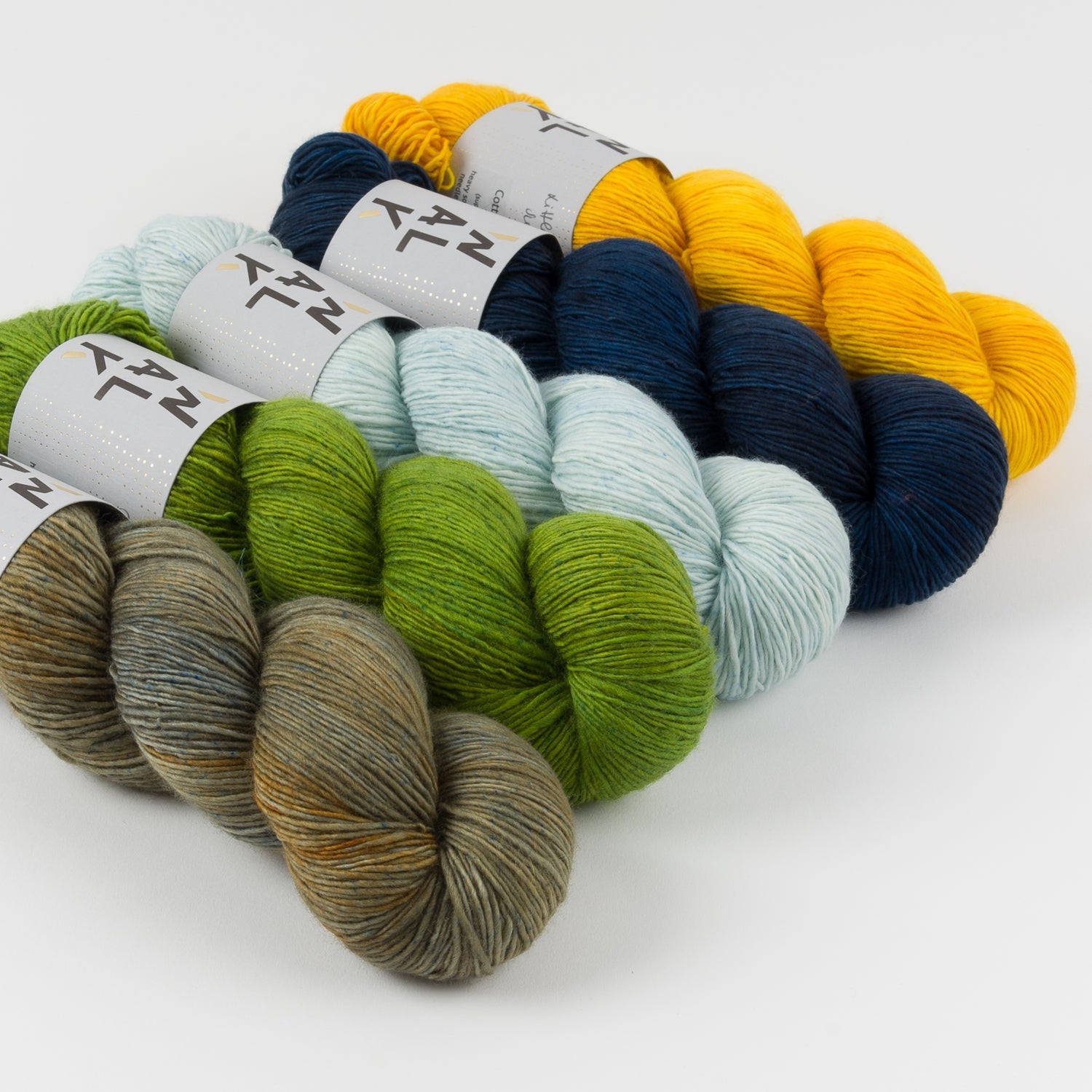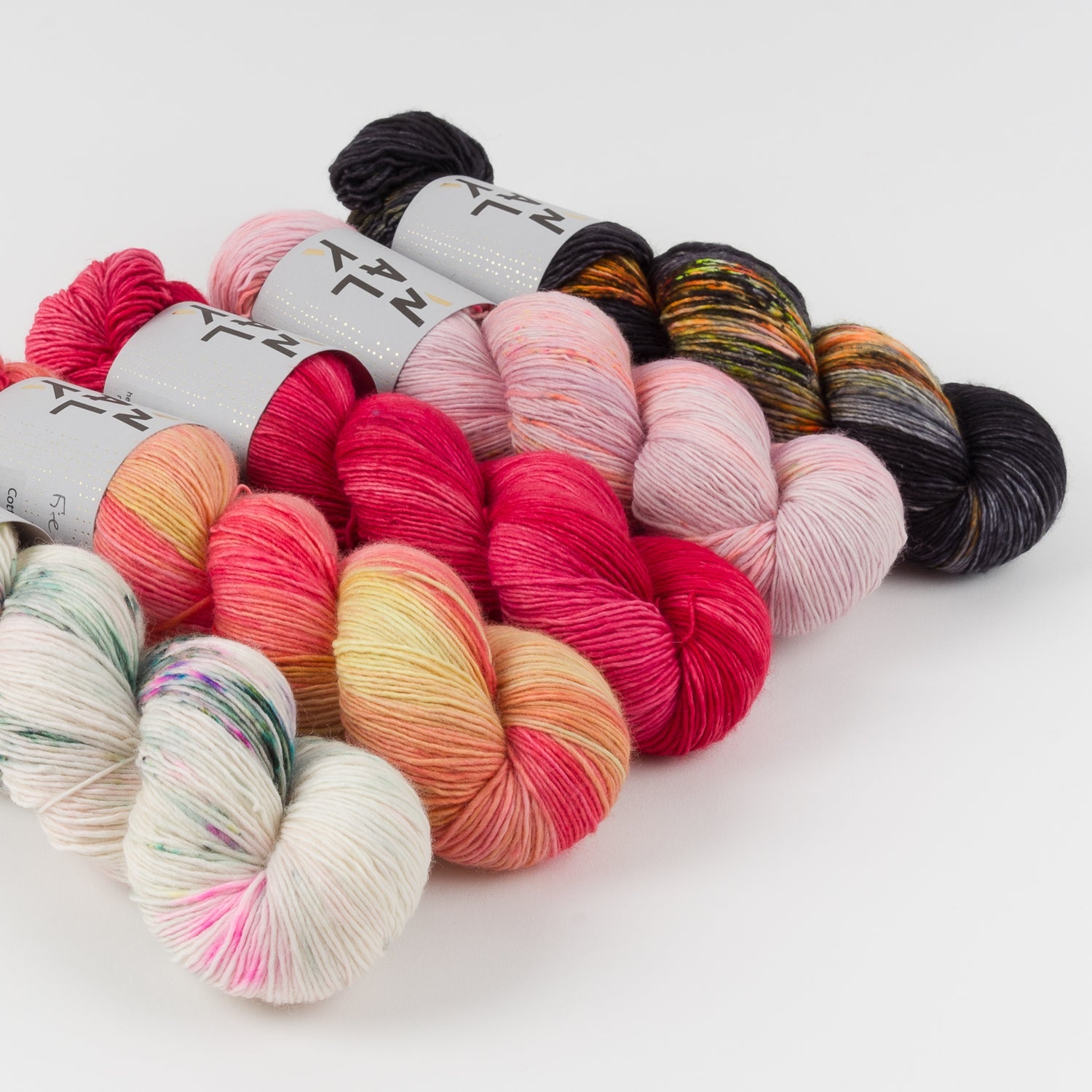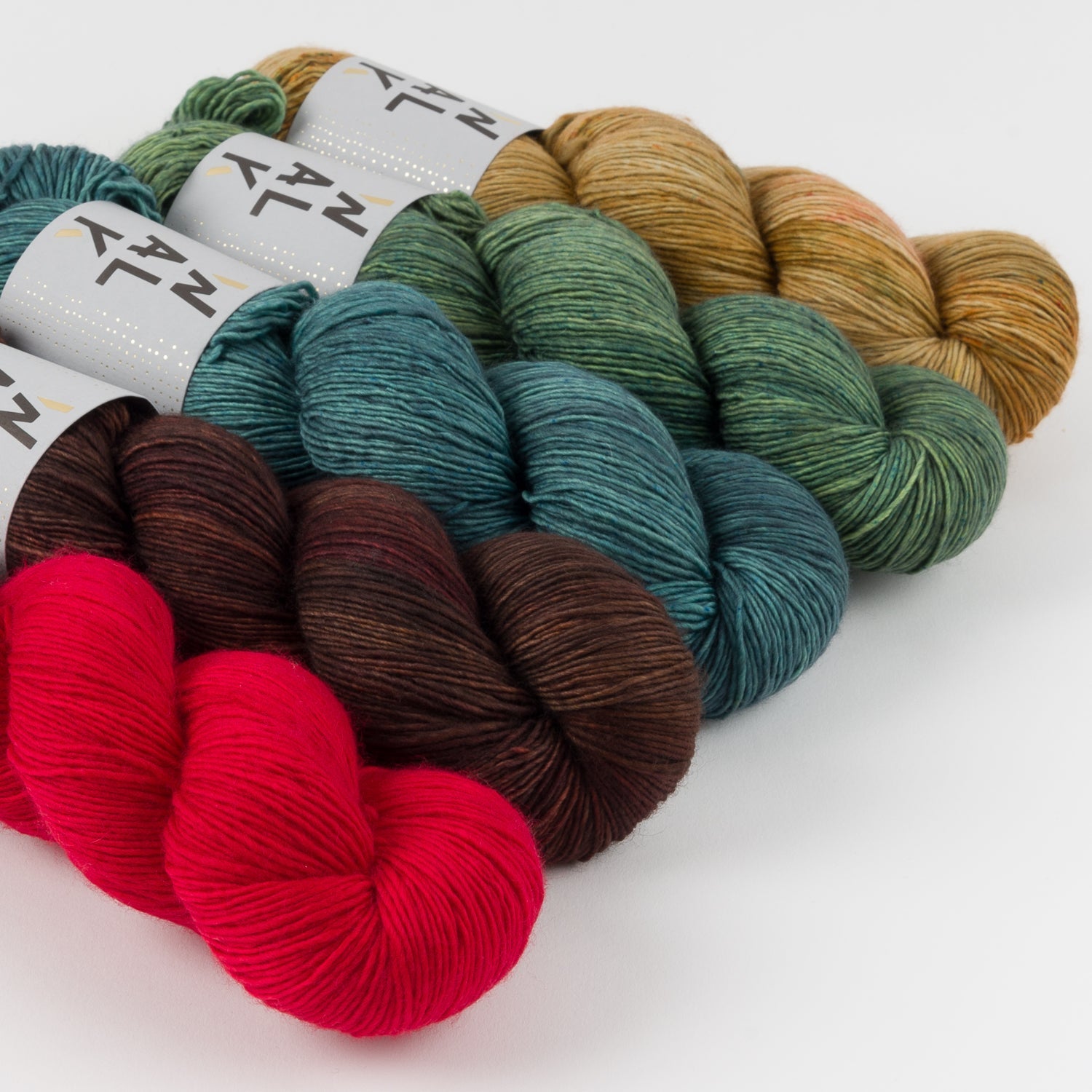 Yarn Requirements:500g fingering weight yarn in five coloursThis kit includes a Westknits pattern download code that can be redeemed for this or another Westknits pattern of your choice. You will receive your code once your order is shipped and it can then be redeemed on Ravelry!
